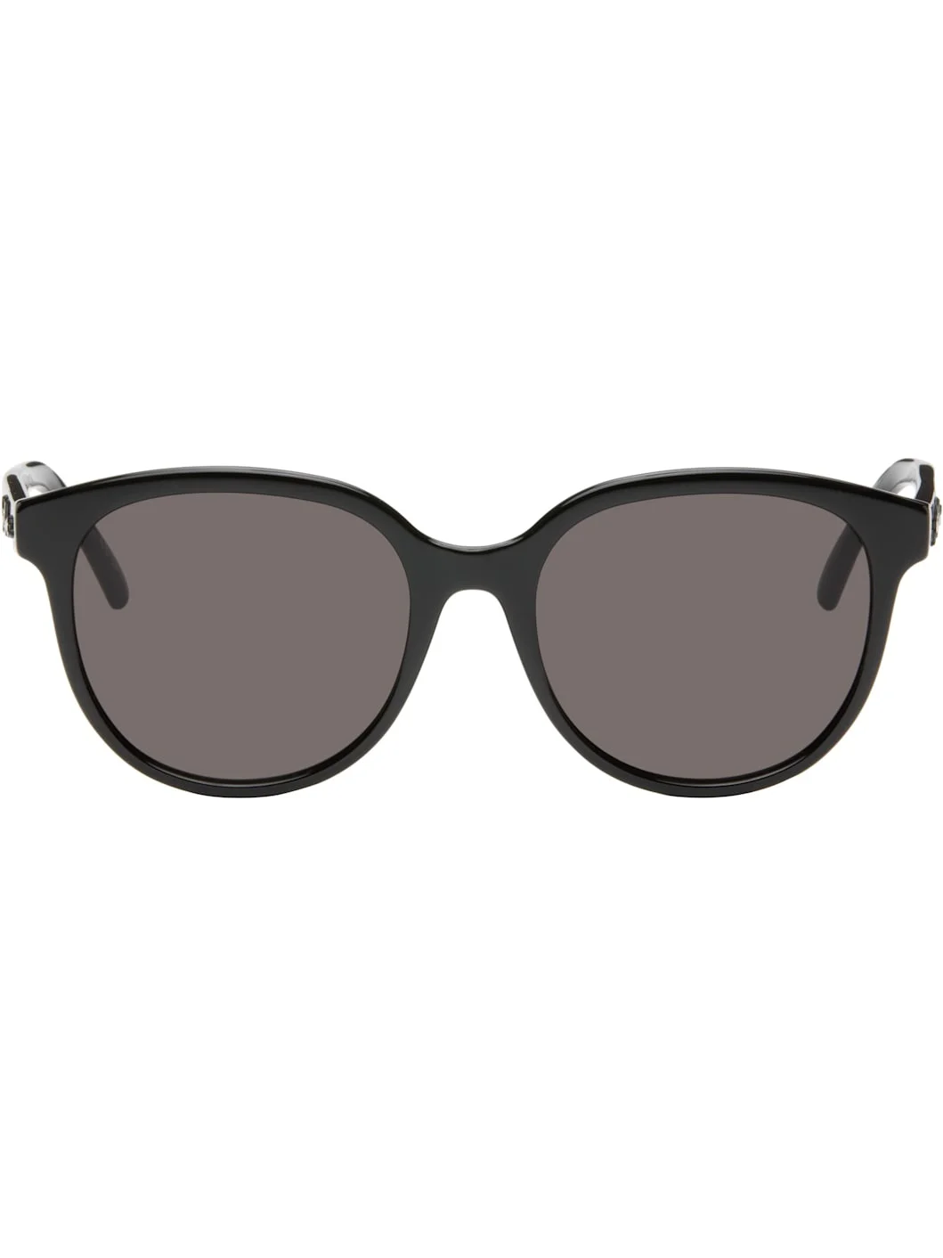 Round acetate-frame sunglasses in black. · Gray lenses · Integrated nose pads · Logo hardware at temples · Includes leather pouch · Size: 55.19 145 Supplier color: Black