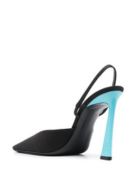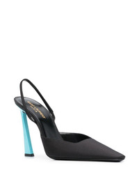 Blade 105mm slingback pumps These Saint Laurent pumps are characterised by a sky blue heel. It provides a contrasting accent to the otherwise pared-back, black upper. Made in Italy Composition Sole: Calf Leather 100% Lining: Calf Leather 100% Outer: Fabric 100% SIZE & FIT Measurement HEEL 4.5 in(11.5 cm)