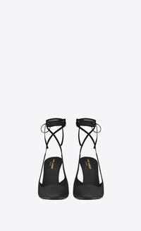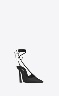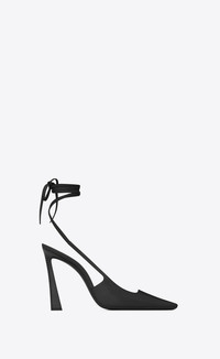 SLINGBACK PUMPS WITH SQUARE-CUT VAMP, LONG SQUARED-TOE, FLARED HEEL AND WRAPAROUND ANKLE TIES. - 100% CALFSKIN LEATHER - LEATHER SOLE - WRAPAROUND STRAP CLOSURE - TOTAL HEEL HEIGHT: 10,5 CM / 4,1 INCHES - STYLE ID 731433AABNE1000 - MADE IN ITALY