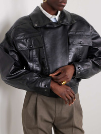 CROPPED JACKET WITH A STAND COLLAR AND FRONT STORM FLAP, FEATURING DROP SHOULDERS AND FLAP POCKETS. - 100% LAMBSKIN - CUPRO AND COTTON LINING - FRONT ZIP CLOSURE WITH SNAP-BUTTON STORM FLAP - TWO PATCH POCKETS WITH SNAP BUTTON FLAP AND TWO WELT POCKETS AT THE FRONT - TWO JETTED INNER POCKETS - SNAP-BUTTON STAND COLLAR - TWO-SNAP BUTTON CUFFS - SHIRRED BACK WAIST - STYLE ID 785562YCOD21000 - MADE IN ITALY
