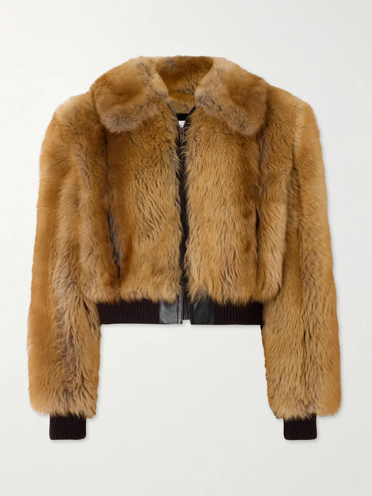 SAINT LAURENT's bomber jacket stays true to the house's effortless glamour. Made from soft, fuzzy shearling, it has a neat collar and relaxed shape tampered by ribbed trims. Wear yours with jeans or leather pants.