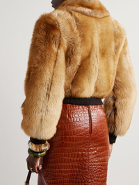 Leather-trimmed shearling bomber jacket Brown