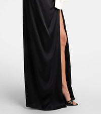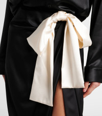 Since its conception in 1961, Saint Laurent has been coveted for its elegant Parisian aesthetic. Made from lustrous silk charmeuse, this maxi skirt boasts a deep front slit and a glamorous bow at the waist. Product Details - Material: 100% silk - Care instructions: dry clean - Made in France - Color: black - Designer color name: Noir - Material II: 100% silk - Closure: hook-fastening front, wrap-front - Item number: P01128192 Size & Fit - True to size - Non-stretchy fabric - High-waisted - The model seen in the picture is 178cm-5'10" and wearing a size FR 34