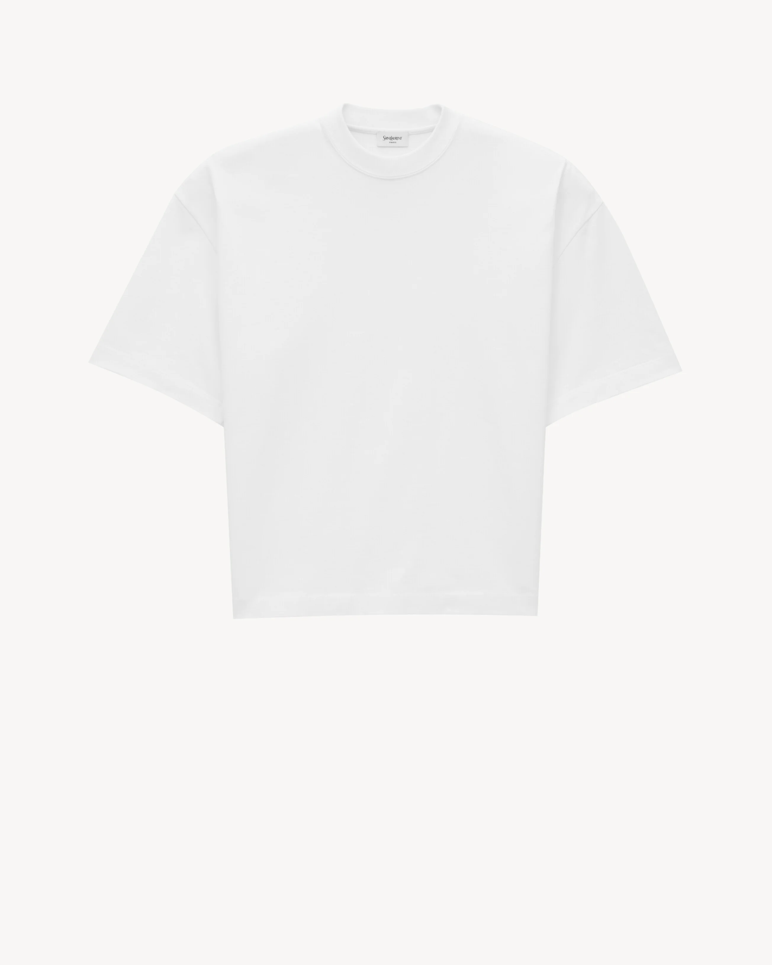 BOXY CREWNECK T-SHIRT WITH DROP SHOULDERS AND A SAINT LAURENT EMBROIDERY AT THE BACK NECK, MADE WITH CERTIFIED COTTON. - CERTIFIED COTTON - CREWNECK - 100% COTTON - STYLE ID 848623Y38BG9000 - MADE IN ITALY