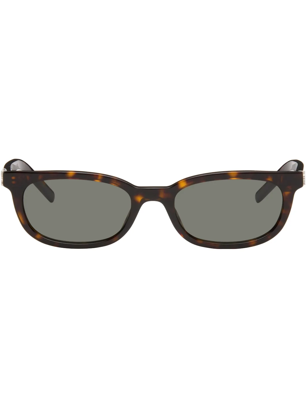 Rectangular tortoiseshell acetate-frame sunglasses. · Gray lenses · 100% UVA/UVB protection, category 3 · Integrated nose pads · Logo hardware at temples · Includes case · Size: 48.22 145 Supplier color: Havana/Havana/Grey Acetate. Made in Italy 261418F005030