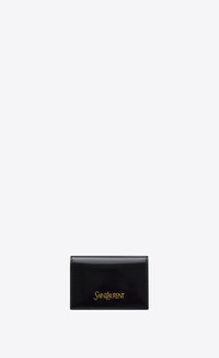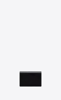 BUSINESS CARD CASE DECORATED WITH A METAL SAINT LAURENT SIGNATURE. - 80% CALFSKIN LEATHER, 20% METAL - DIMENSIONS: 11 X 7.5 X 2 CM / 4.3 X 3 X 0.8 INCHES - BRONZE-TONED HARDWARE - SNAP-BUTTON CLOSURE - ONE MAIN COMPARTMENT, THREE CARD SLOTS - LEATHER LINING - STYLE ID 813160670 - MADE IN ITALY