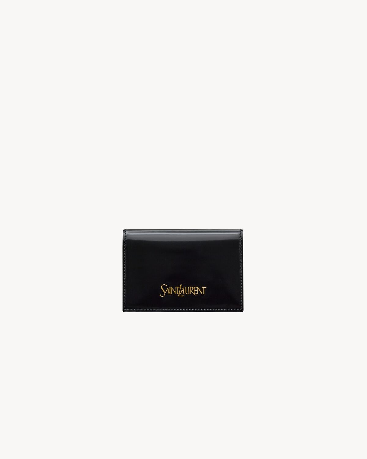 BUSINESS CARD CASE DECORATED WITH A METAL SAINT LAURENT SIGNATURE. - DIMENSIONS: 11 X 7.5 X 2 CM / 4.3 X 3 X 0.8 INCHES - BRONZE-TONED HARDWARE - SNAP-BUTTON CLOSURE - ONE MAIN COMPARTMENT, THREE CARD SLOTS - LEATHER LINING - CALFSKIN LEATHER, METAL - STYLE ID 760735AACQP1000 - MADE IN ITALY