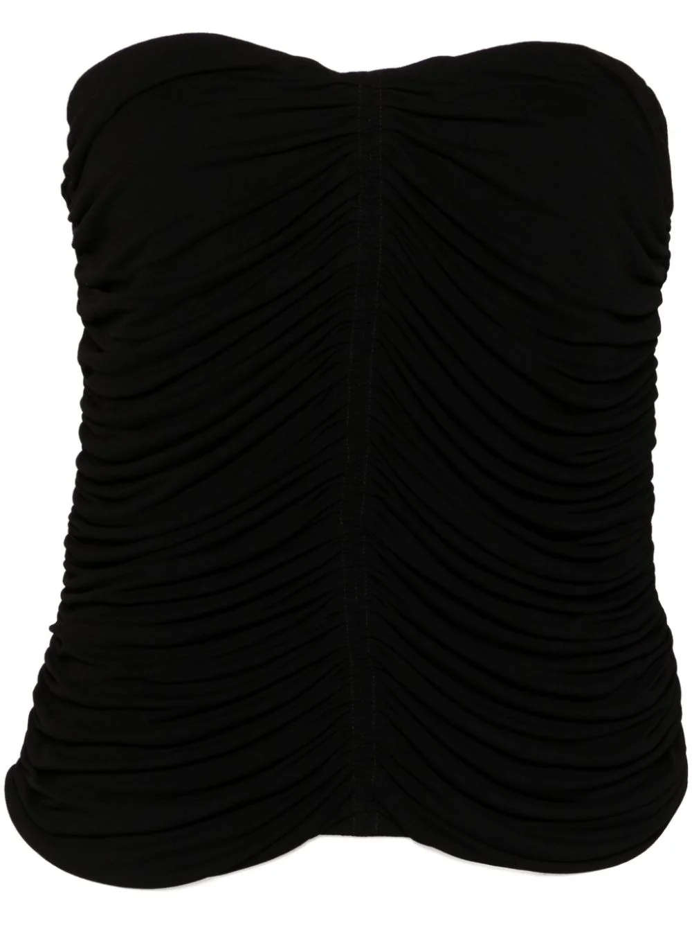 ruched strapless top Highlights - Black - Ruched bodice - Sweetheart neck - Strapless - Curved hem - Concealed rear zip fastening Made in Italy Composition Viscose 100% SIZE & FIT Model measurements Height 5 ft 10 in(1.77 m) Bust/Chest 32.28 in(82 cm) Hips 35.03 in(89 cm) Waist 25.19 in(64 cm) Measurement LENGTH 12.99 in(33 cm) WAIST 26.77 in(68 cm) BUST 27.55 in(70 cm) FittingInformation Designed for a close fit throughout Made from a midweight fabric This piece fits true to size – take your usual size
