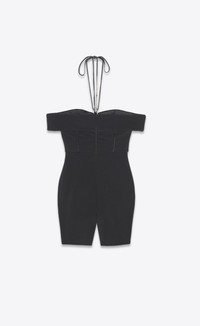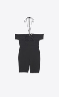 SHORT PLAYSUIT FEATURING CUT-OUT IN THE CENTER OF THE CHEST AND RHINESTONE HALTERNECK STRAPS. - 96% VIRGIN WOOL, 2% ELASTANE, 2% POLYAMIDE - SILK LINING - HOOK-AND-EYE CLOSURE - BOAT NECKLINE WITH HALTERNECK STRAPS - STYLE ID 684827Y5E471000 - MADE IN FRANCE