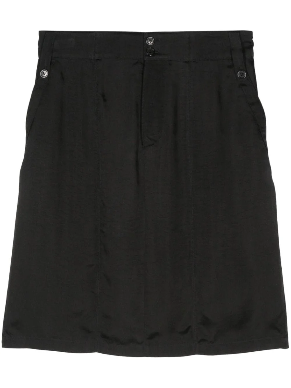 twill-weave mini skirt Highlights - Black - Twill weave - Pencil silhouette - Waist tabs - Two diagonal pockets to the sides - Central rear vent - Straight hem - Unlined - Concealed fly and button fastening Made in Italy Composition Cupro 100% SIZE & FIT FittingInformation This mini-length skirt is intended to be worn high on the waist The partially elasticated waistband offers increased movement and comfort at the waist Made from a lightweight non-stretch fabric This piece fits true to size – take your usual size