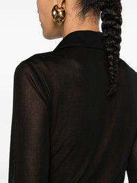 button-up mesh shirt Highlights - Black - Mesh design - Semi-sheer construction - Polo collar - Short front button fastening - Long sleeves with buttoned cuffs - Straight hem Made in Italy Composition Viscose 100% SIZE & FIT Model measurements Height 5 ft 10 in(1.78 m) Bust/Chest 33.07 in(84 cm) Hips 36.61 in(93 cm) Waist 24.8 in(63 cm) FittingInformation Designed for a slim fit that sits just away from the body offering a close yet comfortable fit Made from a lightweight non-stretch fabric, this piece offers minimal elasticity when worn This piece fits true to size – take your usual size