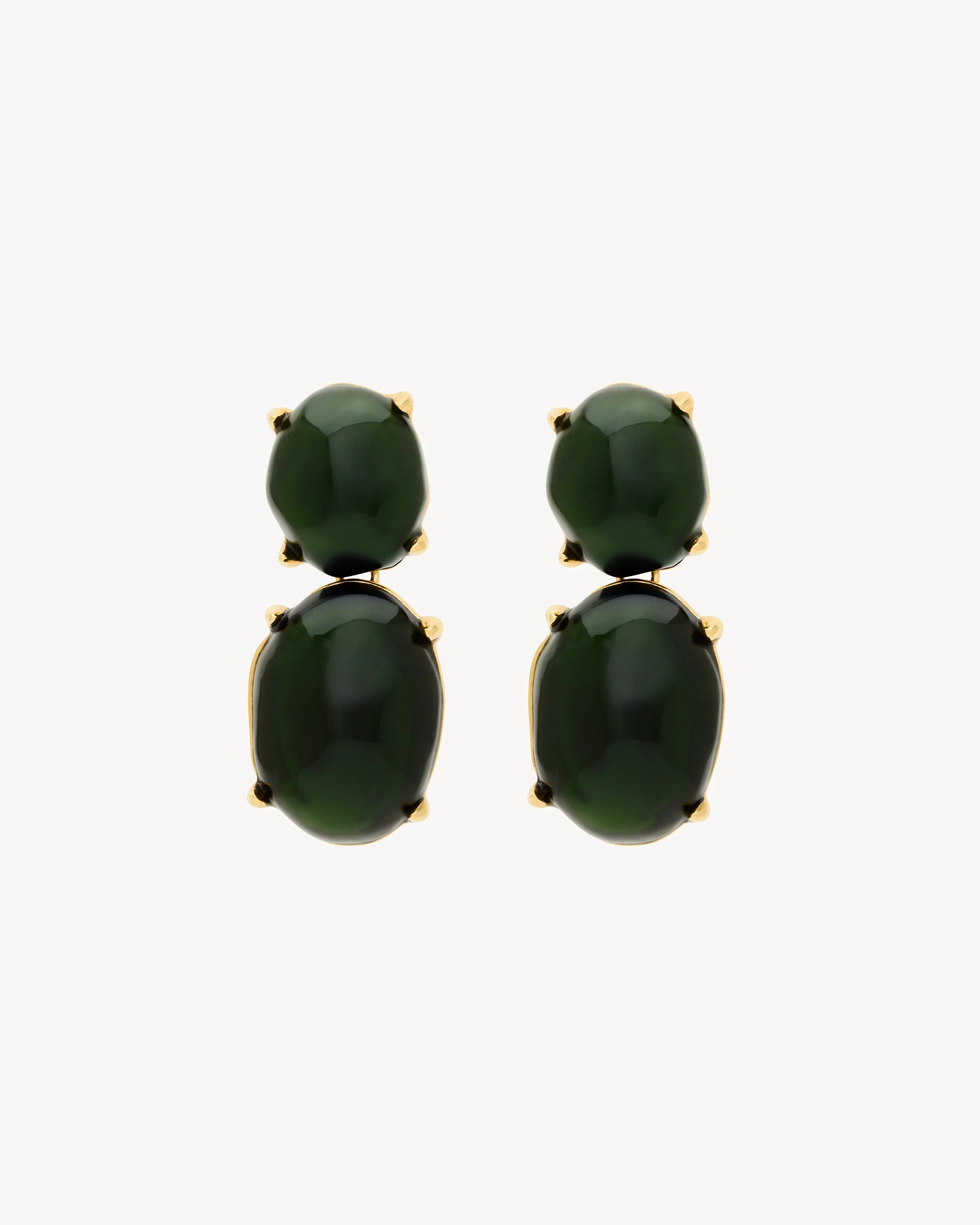 PENDANT EARRINGS FEATURING A CLAW-SET CABOCHON STUD AND PENDANT. - CLIP-ON CLOSURE - SAINT LAURENT ENGRAVING - LENGTH: 7 CM / 2.8" - 50% BRASS / 50% RESIN - STYLE ID 840559Y15918441 - MADE IN THAILAND