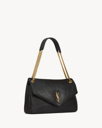 SAINT LAURENT'S NEW SIGNATURE ENVELOPE BAG. MADE OF FINE-GRAINED LEATHER WITH PADDED QUILTING. THIS LARGE VERSION IS ELEVATED BY A SLIDING CURB CHAIN. SOFT AND SPACIOUS, IT IS THE IDEAL SIZE FOR EVERYDAY USE. - GROSGRAIN LINING - BRONZE-TONED HARDWARE - SNAP-BUTTON CLOSURE - ONE INTERIOR ZIP POCKET - DIMENSIONS: 28 X 22 X 12 CM / 11" X 8.7" X 4.7" - STRAP DROP: 43 CM / 16.9" - LAMBSKIN, BRASS - STYLE ID 777399AACYT1000 - MADE IN ITALY