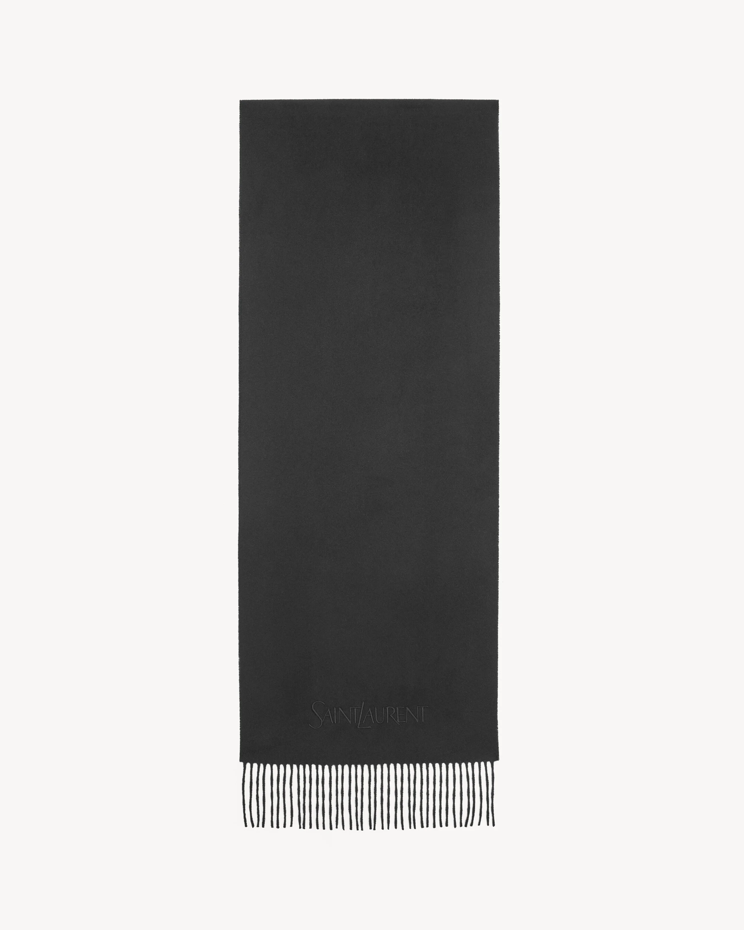 RECTANGULAR SCARF WITH SAINT LAURENT EMBROIDERY AND FRINGED ENDS. - SAINT LAURENT EMBROIDERED END - FRINGED ENDS - DIMENSIONS: 35 X 180 CM / 13.8 X 70.9" - 100% CASHMERE - STYLE ID 7489593Y2011060 - MADE IN ITALY