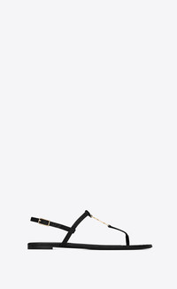 FLAT SANDALS WITH A T-STRAP ARCH BAND AND AN ADJUSTABLE BUCKLE, DECORATED WITH SMALL METAL YSL INITIALS. - 100% CALFSKIN LEATHER - TOTAL HEEL HEIGHT: 0,5 CM / 0.2 INCHES - LEATHER SOLE - ADJUSTABLE ANKLE STRAP - YSL MONOGRAM IN GOLD-TONE METAL - STYLE ID 6598172ZEJJ1000 - MADE IN ITALY