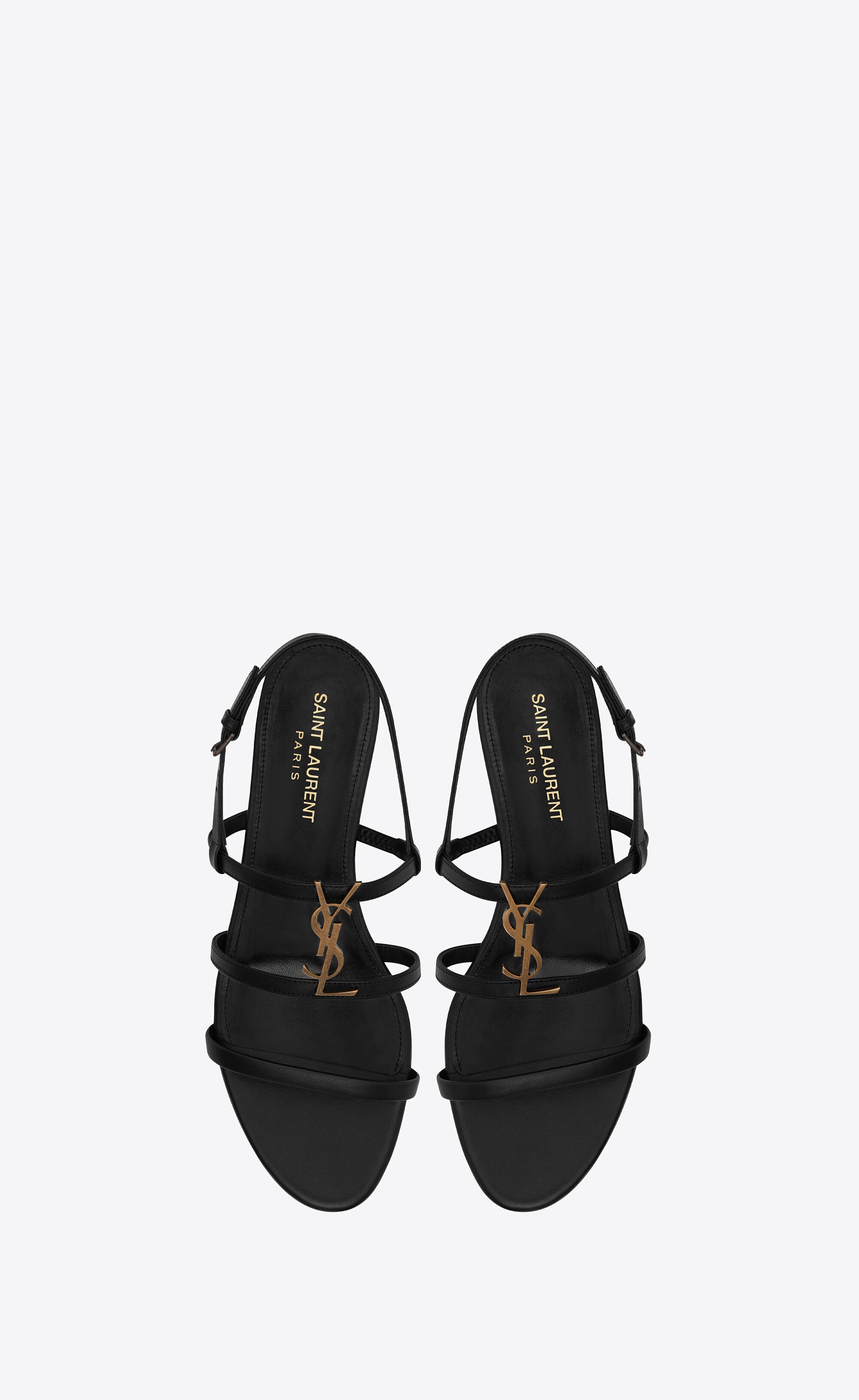 FLAT SANDALS MADE WITH METAL-FREE TANNED LEATHER, FEATURING FINE STRAPS AND AN ADJUSTABLE BUCKLE, DECORATED WITH METAL YSL INITIALS. - 100% CALFSKIN LEATHER - CHROME FREE AND METAL FREE TANNED LEATHER - TOTAL HEEL HEIGHT: 0,5 CM / 0.2 INCHES - LEATHER SOLE - YSL MONOGRAM IN OFFICER GOLD-TONE METAL - ADJUSTABLE ANKLE STRAP - STYLE ID 652758BDATT1000 - MADE IN ITALY