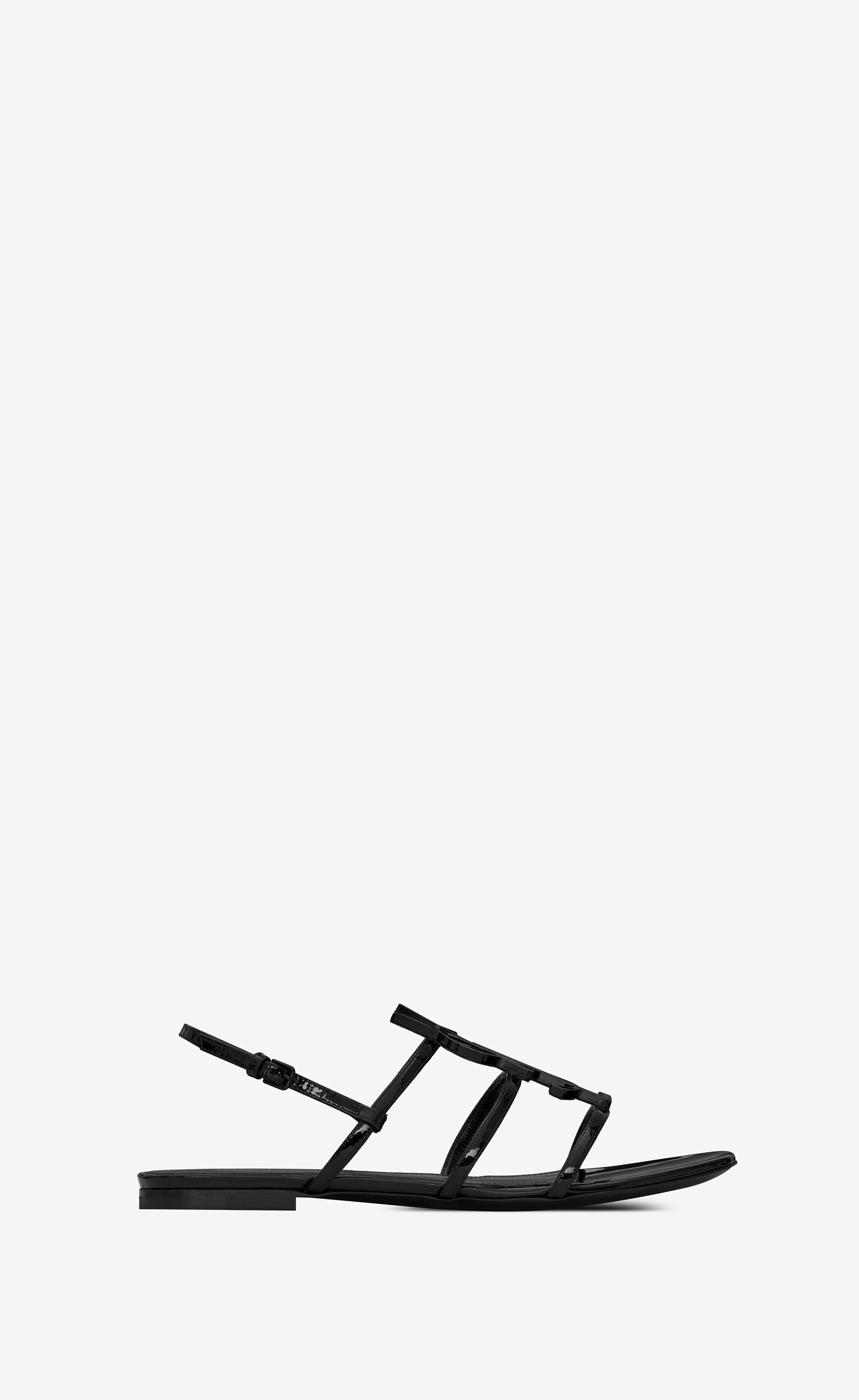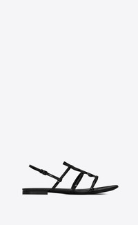 FLAT SANDALS WITH FINE STRAPS AND AN ADJUSTABLE BUCKLE, DECORATED WITH METAL YSL INITIALS. - 100% CALFSKIN LEATHER - TOTAL HEEL HEIGHT: 0,5 CM / 0.1 INCHES - LEATHER SOLE - BLACK METAL HARDWARE - STYLE ID 5522450NPVV1000 - MADE IN ITALY
