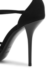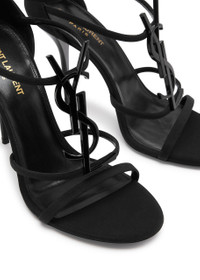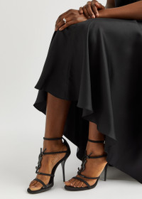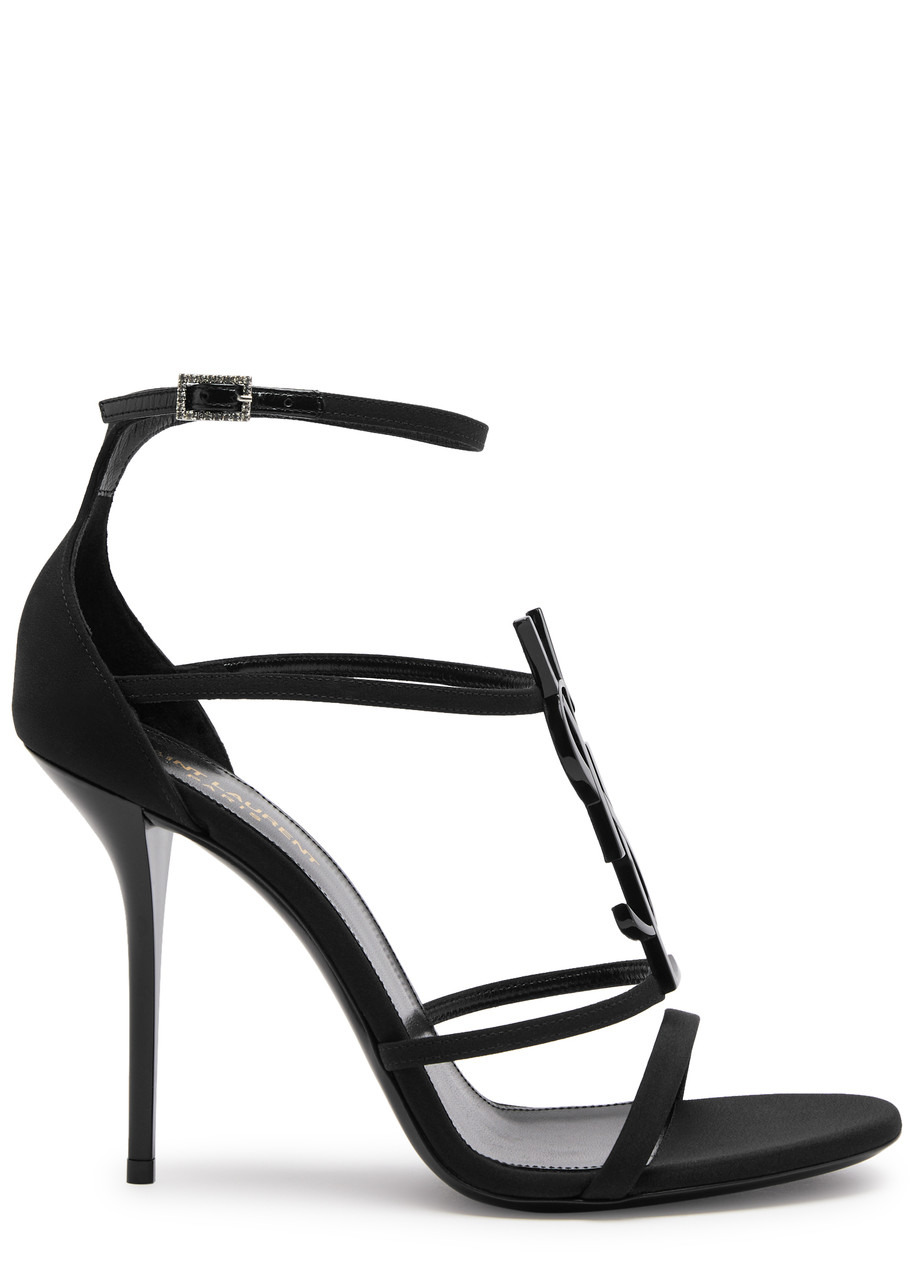 INFO & CARE - Saint Laurent matte satin sandals - Heel measures approximately 4 inches/ 100mm - Designer plaque, open round toe - Crystal-embellished buckle-fastening ankle strap SIZE & FIT - Only available in full sizes, go up to the nearest whole size if you take a half size