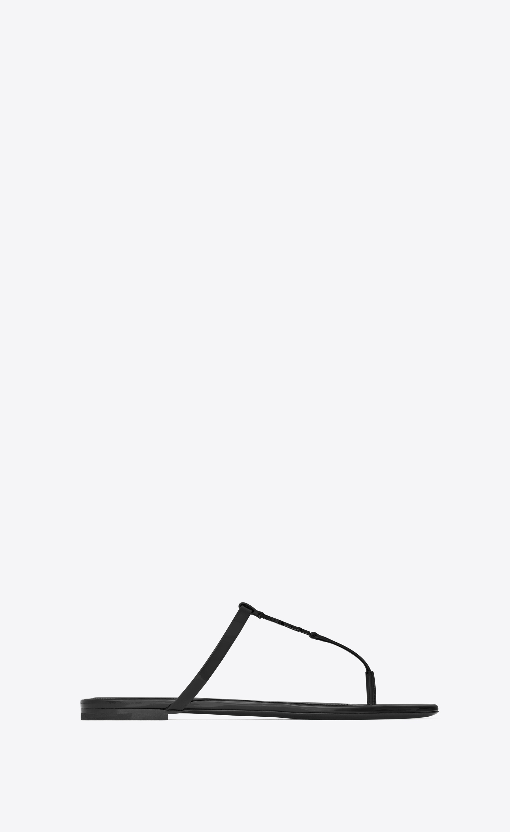 SLIDE SANDALS WITH A T-STRAP ARCH BAND, DECORATED WITH A METAL CASSANDRE ON THE FRONT. - 70% CALFSKIN LEATHER, 30% BRASS - LEATHER SOLE - TOTAL HEEL HEIGHT: 0.5 CM / 0.2 INCHES - CASSANDRE IN BLACK METAL - STYLE ID 7760811TVVV1000 - MADE IN ITALY