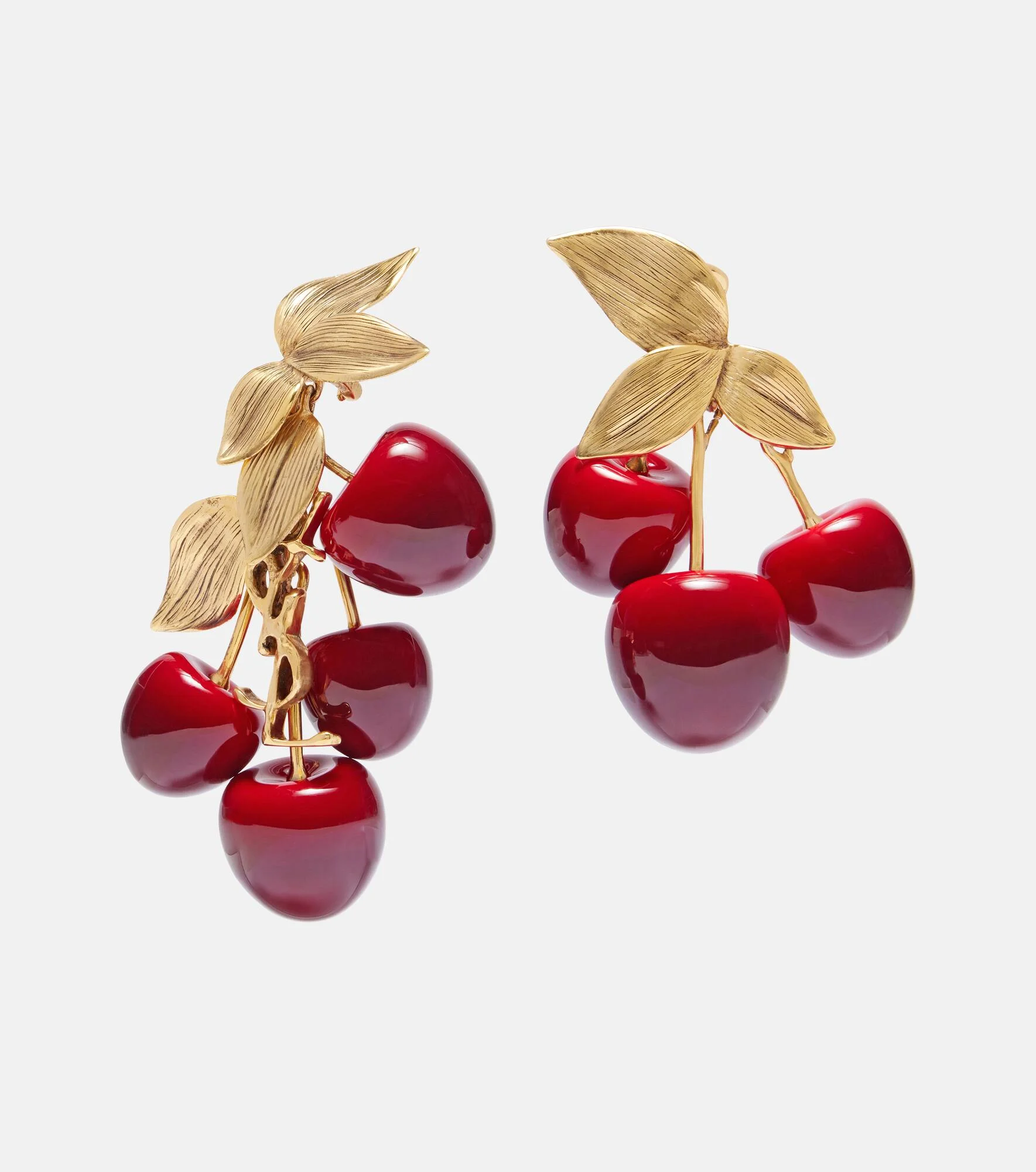 Since its conception in 1961, Saint Laurent has been coveted for its elegant Parisian aesthetic. These cherry earrings boast clip-on closures and sculptural, asymmetric silhouettes adorned with the house's signature Cassandre motif. Product Details - Material: brass, resin - Made in Thailand - Item color: gold, red - Color: gold - Closure: clip-on - Includes: box, dust bag - Item number: P01146678 Size & Fit - Length 10,5cm-4" - Max. width 8cm-3"