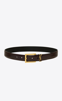 BELT FEATURING AN ELONGATED SQUARE BUCKLE AND CASSANDRE LOOP. - CALFSKIN LEATHER, BRASS - DIMENSIONS: 3 CM / 1.1" - BRONZE-TONED HARDWARE - ADJUSTABLE BUCKLE CLOSURE - STYLE ID 789588AAB2Z6092 - MADE IN ITALY