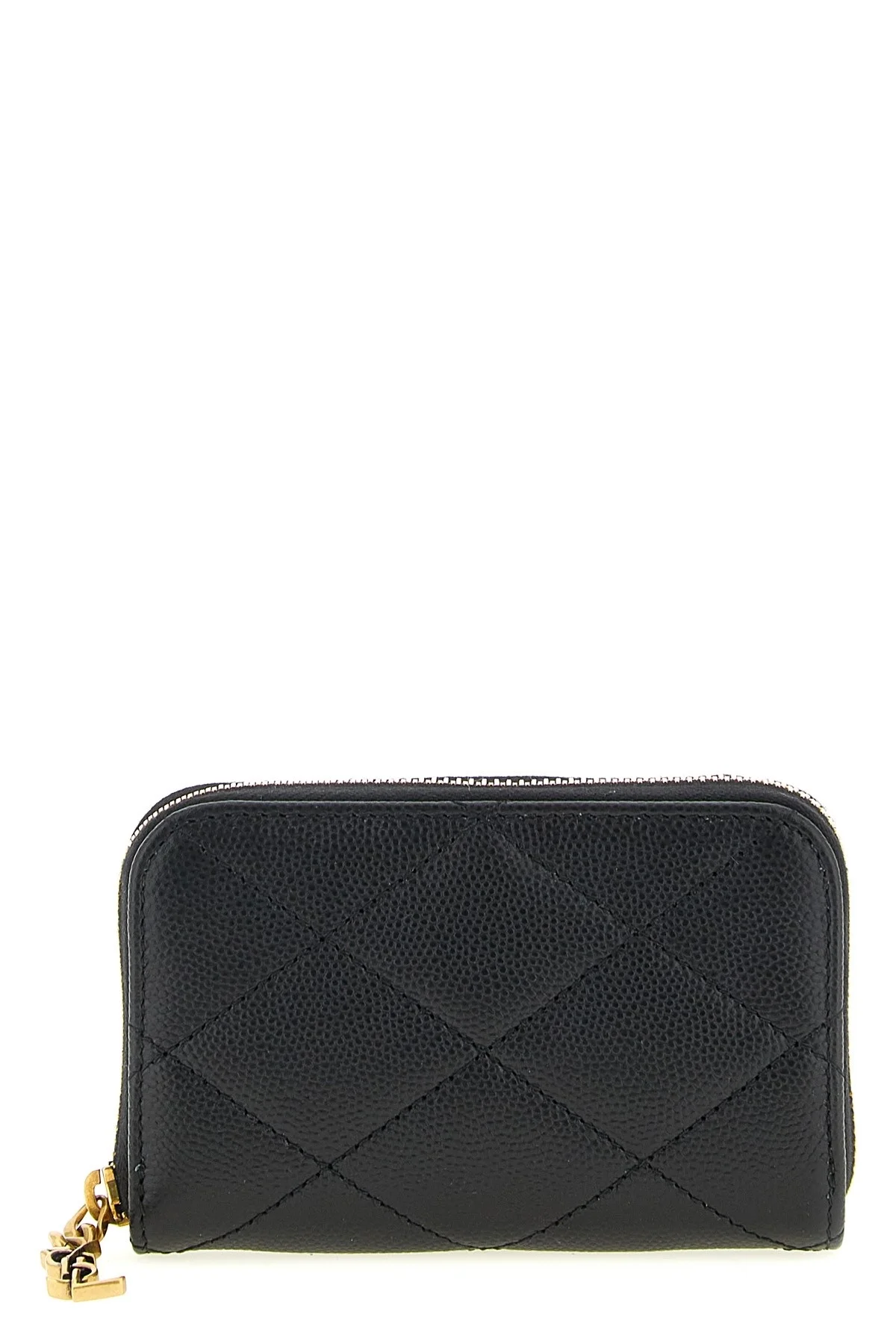 cod. 862443AAGA81000 Grain de poudre embossed leather coin purse with quilted check stitching, zip around closure, antiqued metal 'Cassandre Bijoux' logo zip puller. Color: Black Size & Fit: W 11 x H 7.5 x D 2 cm Composition: 100% calfskin leather (Bos Taurus) Made in: Italy