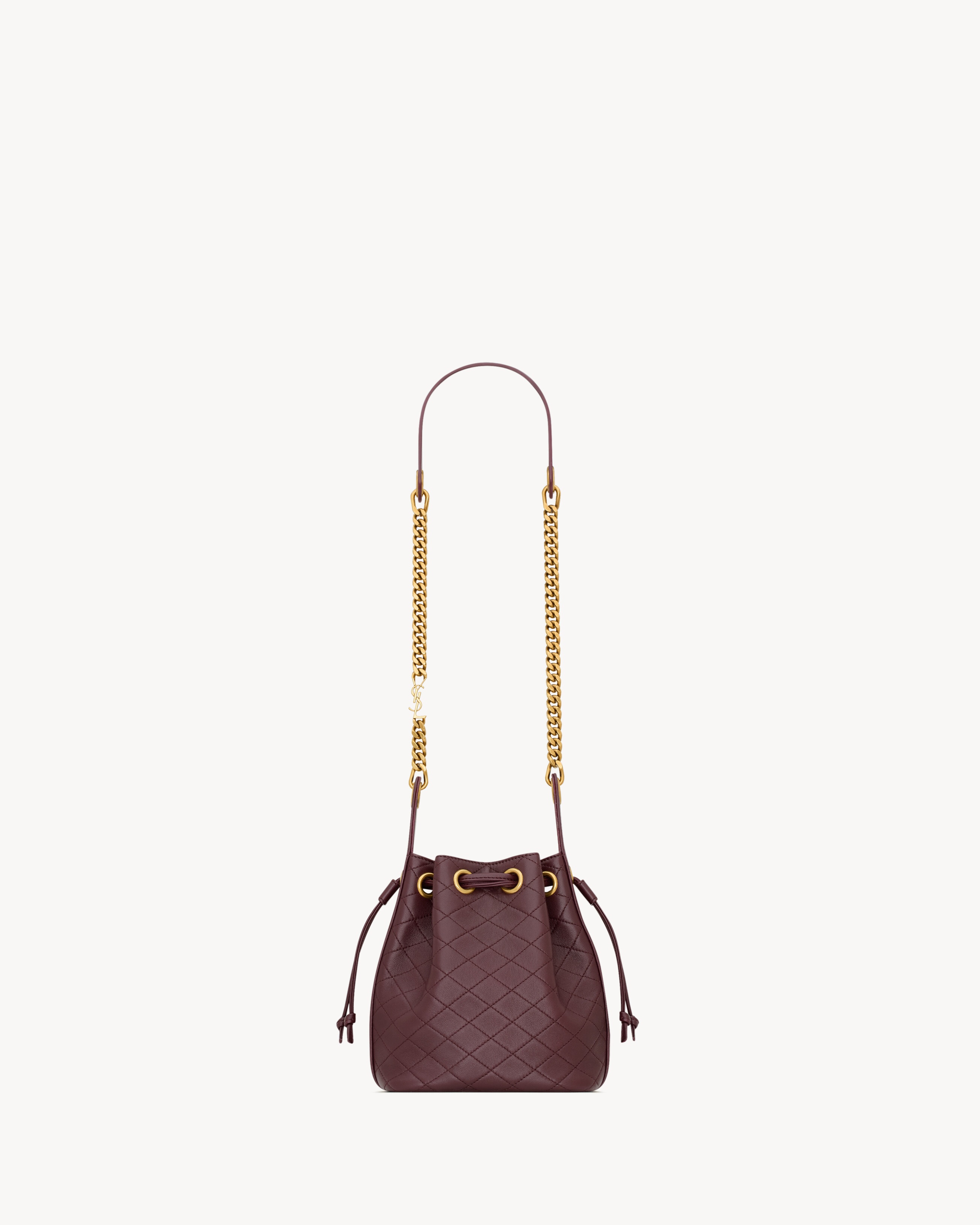 BUCKET BAG IN QUILTED LAMBSKIN, FEATURING A CASSANDRE JEWELRY CHAIN STRAP FOR SHOULDER CARRY. - LEATHER LINING - BRONZE-TONE HARDWARE - DRAWSTRING CLOSURE - DIMENSIONS: 16 X 18 X 10 CM / 6.3" X 7.1" X 3.9" - STRAP DROP: 40 CM / 15.7" - 90% LAMBSKIN 10% BRASS - STYLE ID 8408861EL076195 - MADE IN ITALY