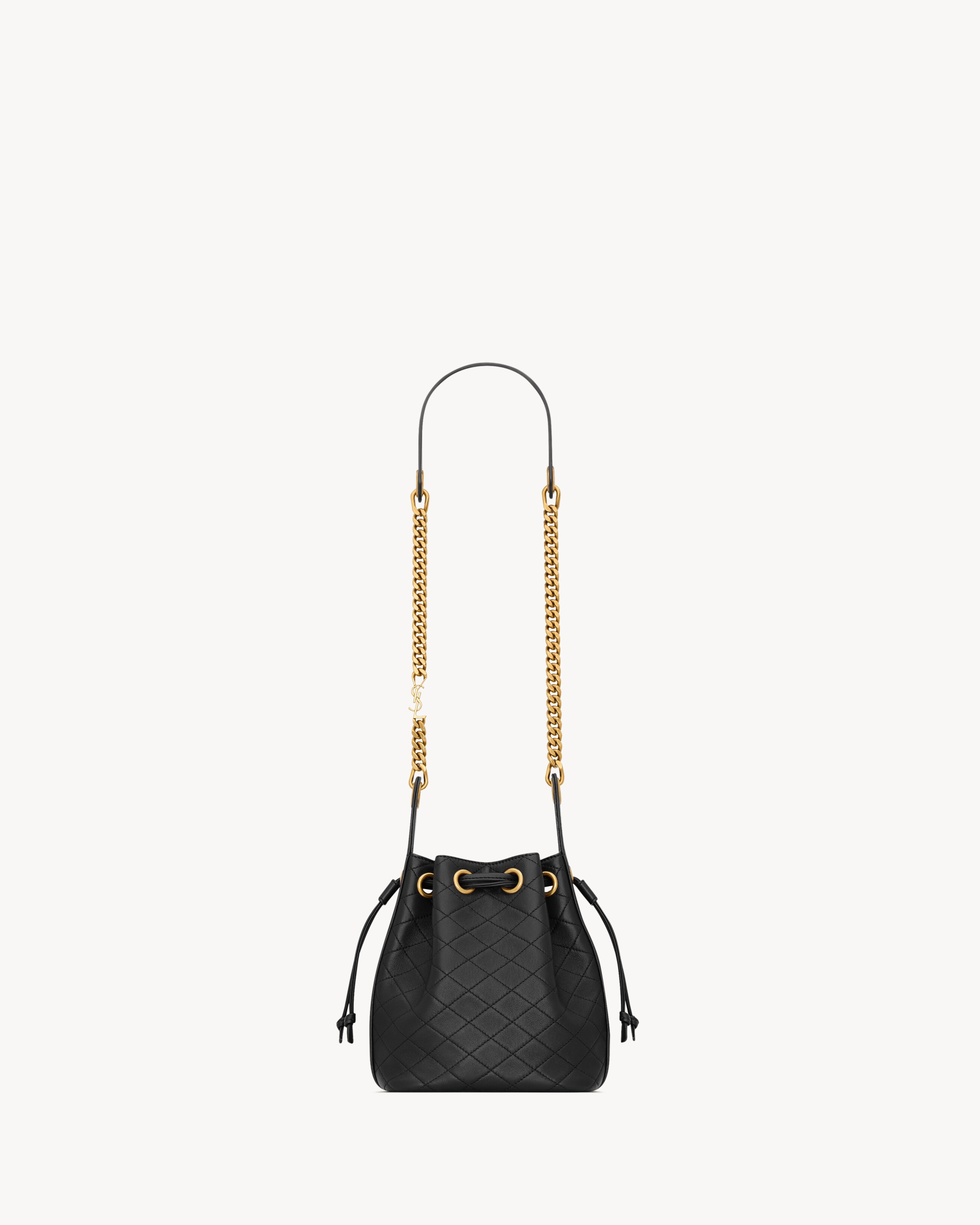 BUCKET BAG IN QUILTED LAMBSKIN, FEATURING A CASSANDRE JEWELRY CHAIN STRAP FOR SHOULDER CARRY. - LEATHER LINING - BRONZE-TONE HARDWARE - DRAWSTRING CLOSURE - DIMENSIONS: 16 X 18 X 10 CM / 6.3" X 7.1" X 3.9" - STRAP DROP: 40 CM / 15.7" - 90% LAMBSKIN 10% BRASS - STYLE ID 8408861EL071000 - MADE IN ITALY