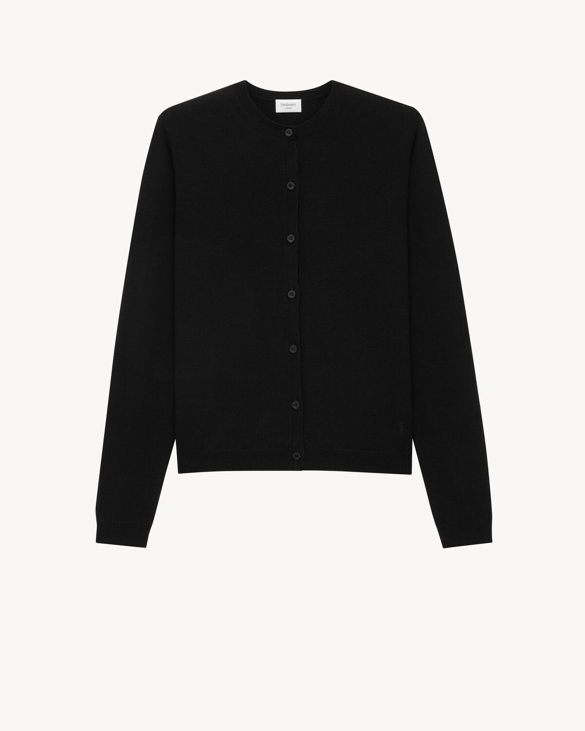 KNIT CARDIGAN MADE WITH CERTIFIED WOOL, FEATURING A CREWNECK, LONG SLEEVES, AND CASSANDRE EMBROIDERY AT THE HEM. - CERTIFIED WOOL - FRONT BUTTON CLOSURE - CREWNECK - RIBBED TRIMS - 100% WOOL - STYLE ID 823581Y77AZ1000 - MADE IN ITALY