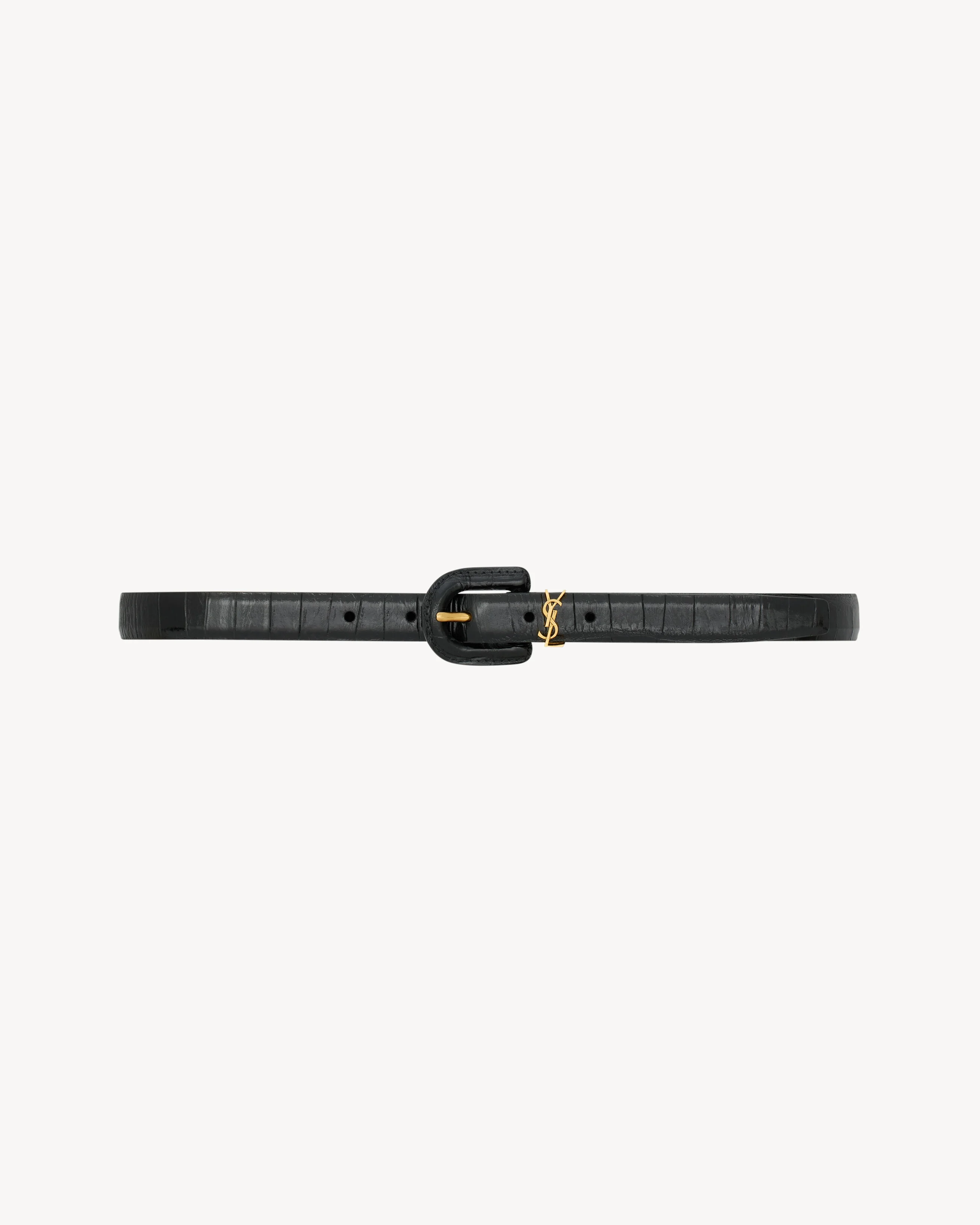 CASSANDRE COVERED U BUCKLE THIN BELT IN CROCODILE-EMBOSSED LEATHER