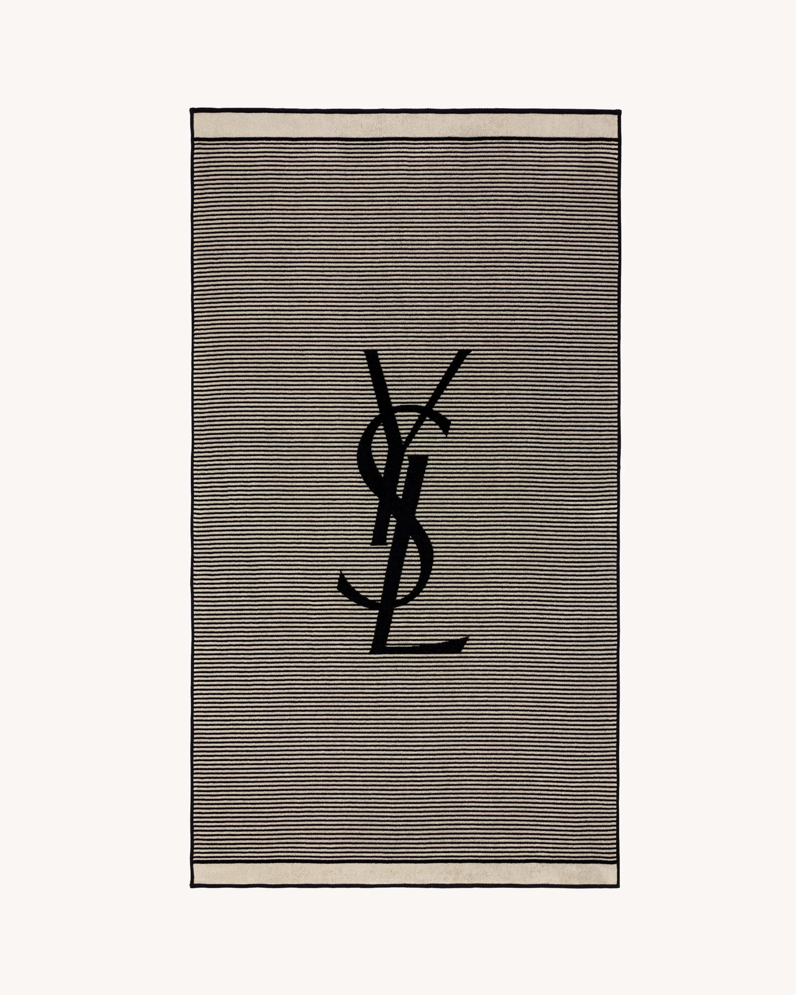 STRIPED BEACH TOWEL MADE WITH CERTIFIED COTTON, FEATURING THE CASSANDRE AT THE CENTER. - CERTIFIED COTTON - 100 X 180 CM / 39.4" X 70.9" - 100% COTTON - STYLE ID 8274953Y1069760 - MADE IN ITALY