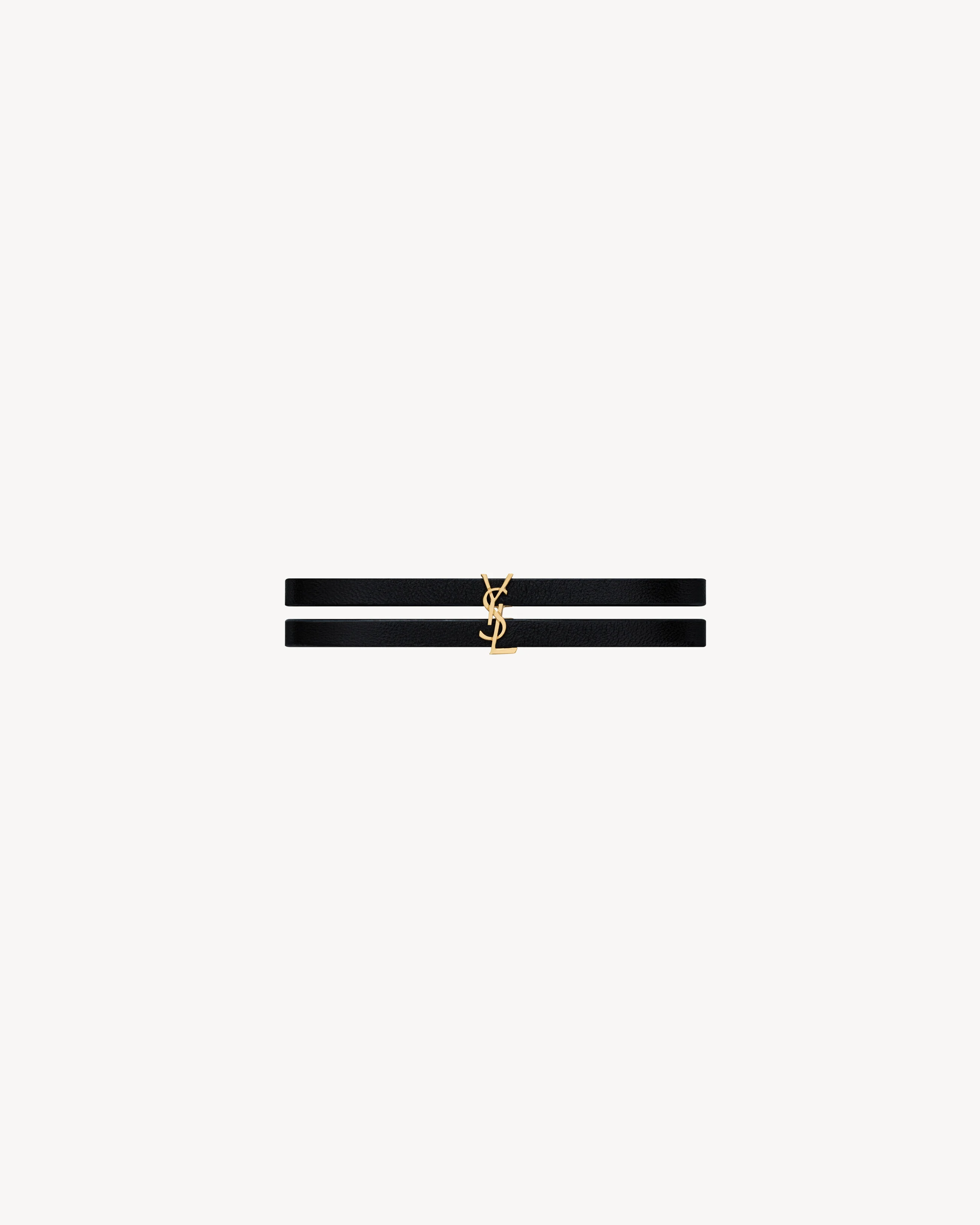 DOUBLE-STRAND THIN BRACELET ADORNED WITH METAL CASSANDRE AT THE CENTER. - 100% LAMBSKIN - MAGNETIC SLIDING CLASP - SAINT LAURENT PARIS ENGRAVING - GOLD-TONED HARDWARE - STYLE ID 758230BL40P1000 - MADE IN ITALY