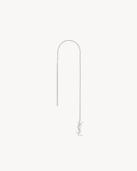 LONG THREADER SINGLE EARRING MADE WITH RECYCLED GOLD, FEATURING A FINE CHAIN AND DIAMOND-PAVED CASSANDRE PENDANT. GOLD IS A PRECIOUS MATERIAL THAT IS MALLEABLE AND HIGHLY SENSITIVE TO SCRATCHING. THE PRODUCT IS EXPECTED TO EVOLVE AND PRESENT MARKS THROUGHOUT ITS LIFECYCLE. MOREOVER, AS GOLD IS A SOFT ALLOY, PIECES SHOULD NOT BE STACKED ONE ON TOP OF THE OTHER TO AVOID DAMAGING THEM. EVERY PIECE OF JEWELRY MUST BE STORED IN ITS ORIGINAL PACKAGING TO AVOID ANY FRICTION WITH OTHER OBJECTS THAT COULD SCRATCH IT. WHEN PART OF A SET, PIECES MUST BE STOCKED SEPARATELY. - RECYCLED GOLD - 56 DIAMONDS TOTALING 0,13CT.; CLARITY: SI; COLOR: GH - EARRING FOR PIERCED EARSEARRING FOR PIERCED EARS - SAINT LAURENT ENGRAVING ON THE INSIDE OF THE CHARM - LENGTH: 16 CM / 6.3 INCHES - 18KT GREY GOLD 750/1000, DIAMOND - STYLE ID 761530Y80044008 - MADE IN ITALY