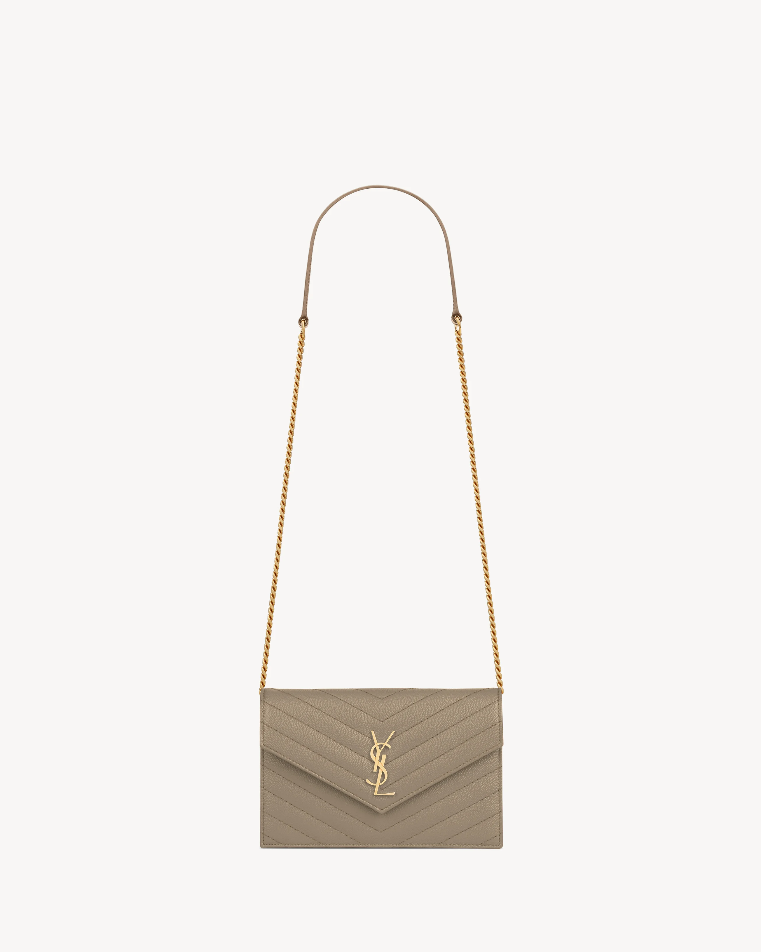 CASSANDRE ENVELOPE CHAIN WALLET IN GRAIN DE POUDRE LEATHER
