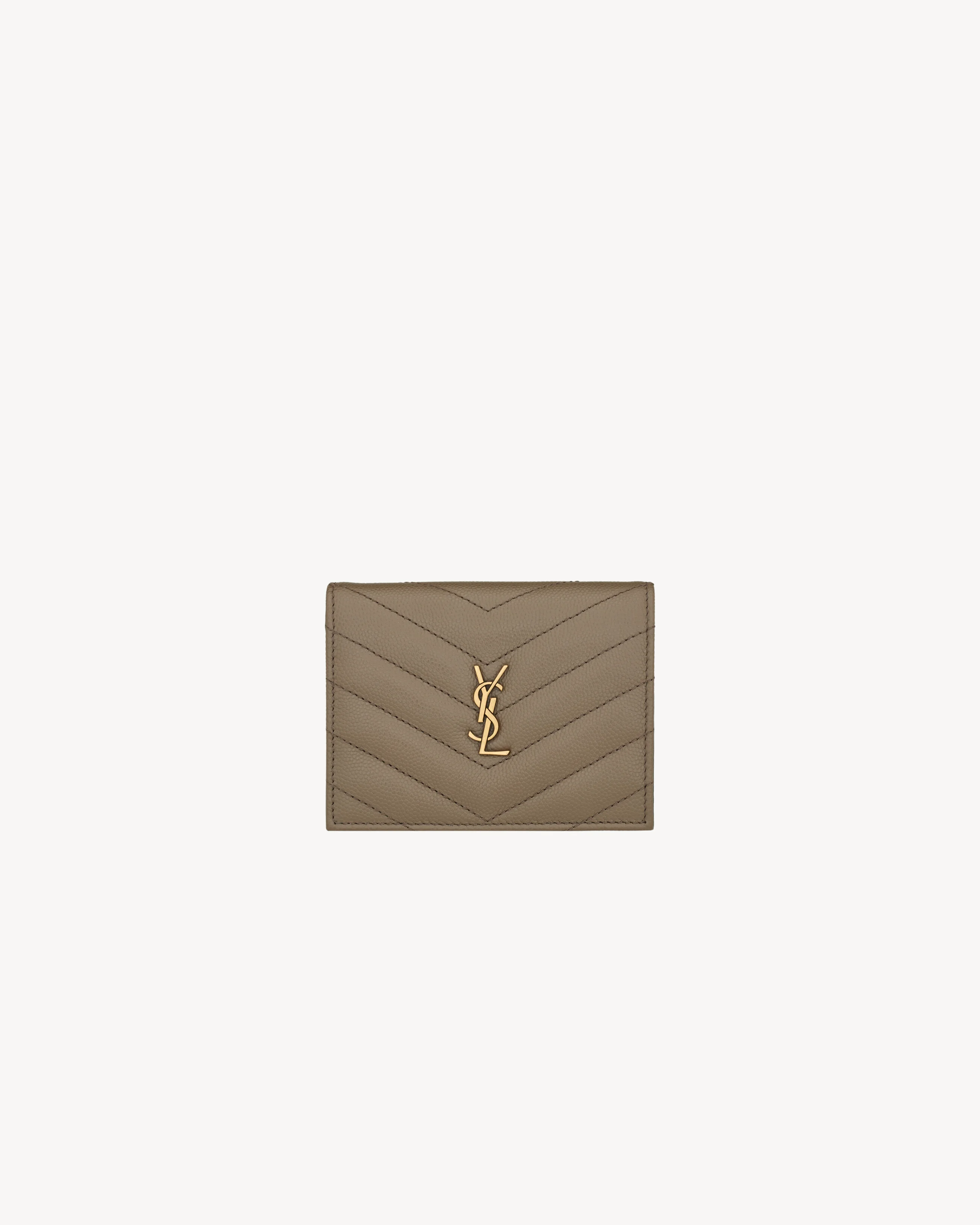 SMALL FLAP CARD HOLDER DECORATED WITH THE CASSANDRE AND QUILTED TOPSTITCHING. - LEATHER LINING - BRONZE-TONE HARDWARE - ONE BILL SLOT - SIX CARD SLOTS - ONE ZIP POCKET - DIMENSIONS: 11 X 9 X 2.5 CM / 4.3" X 3.5" X 1" - CALFSKIN BRASS - STYLE ID 865095AAGA81799 - MADE IN ITALY