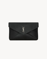 ENVELOPE POUCH WITH A FRONT FLAP, DECORATED WITH THE CASSANDRE. - DIMENSIONS: 30 X 20 X 5 CM / 11.8" X 7.9" X 2" - SILVER-TONED HARDWARE - MAGNETIC SNAP-BUTTON CLOSURE - ONE FLAT POCKET - LEATHER LINING - LAMBSKIN, BRASS - STYLE ID 778181AACIA1000 - MADE IN ITALY