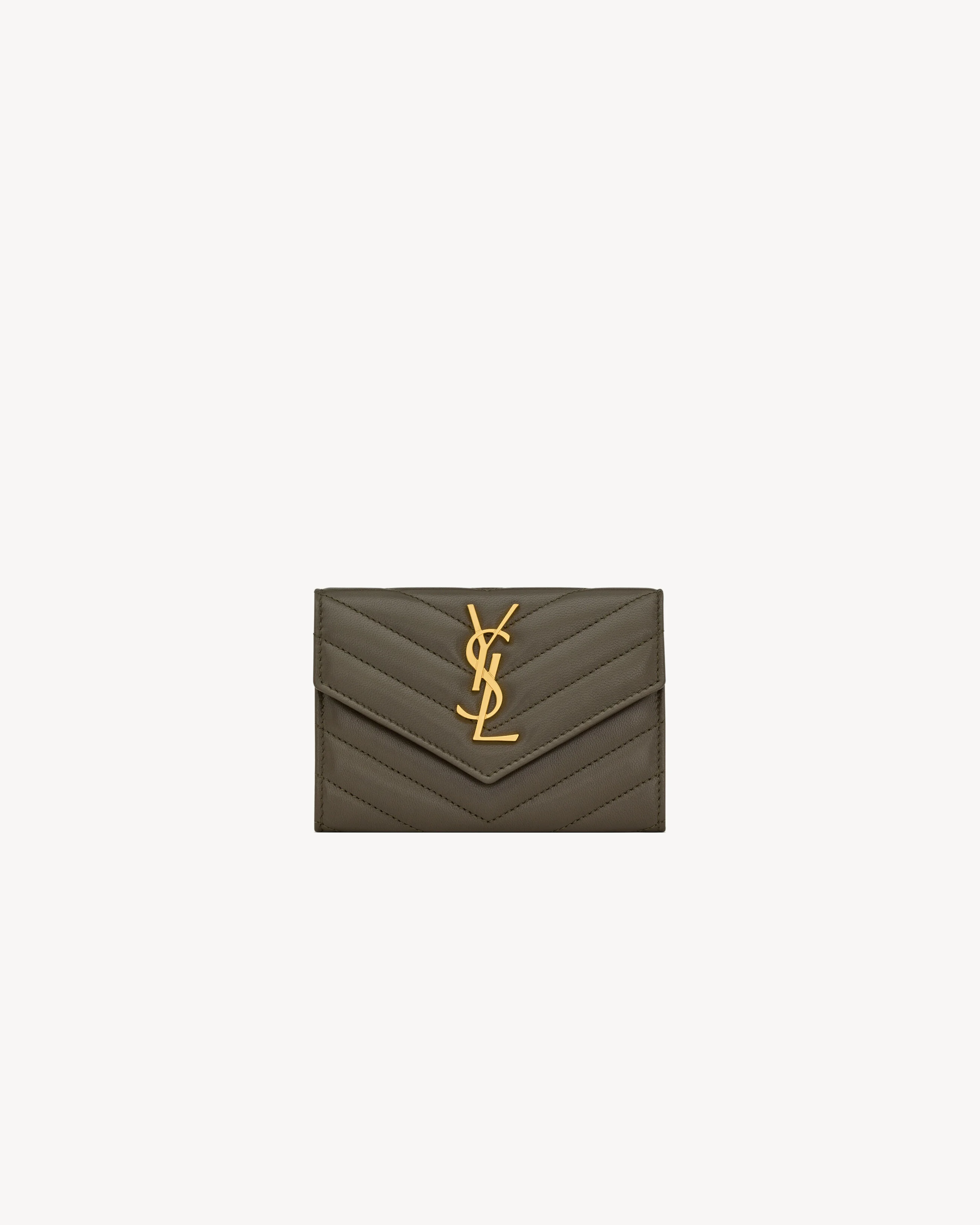SMALL WALLET WITH FLAP DECORATED WITH THE CASSANDRE AND QUILTED OVERSTITCHING. - DIMENSIONS: 13.5 X 9.5 X 3 CM / 5.3 X 3.7 X 1.1 INCHES - SNAP-BUTTON CLOSURE - EXTERIOR: ONE FLAT POCKET AT THE BACK - INTERIOR: FOUR CARD SLOTS, ONE OPEN COMPARTMENT - GOLD-TONED HARDWARE - GROSGRAIN LINING - LAMBSKIN - STYLE ID 414404AAA443212 - MADE IN ITALY