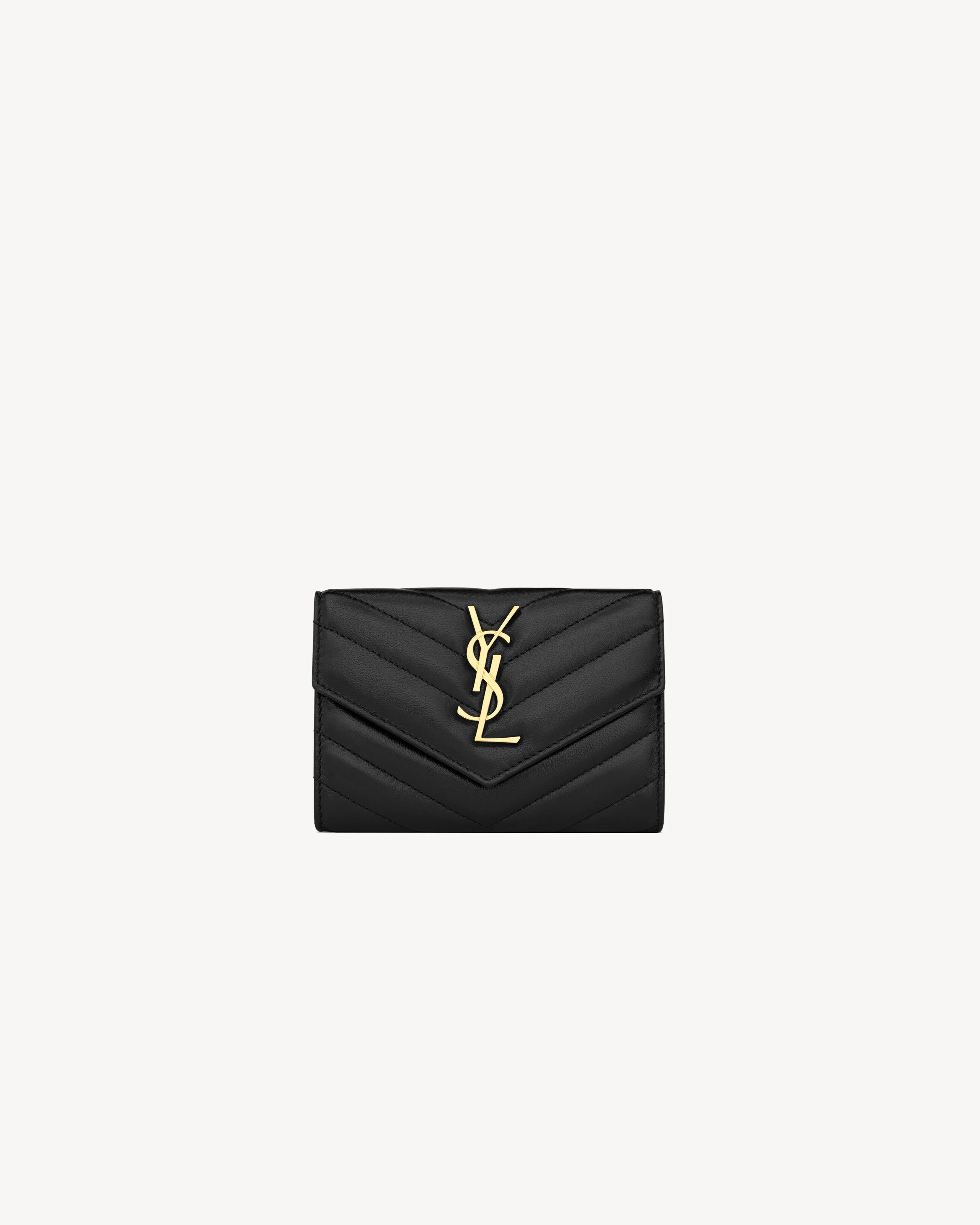 SMALL WALLET WITH FLAP DECORATED WITH THE CASSANDRE AND QUILTED OVERSTITCHING. - DIMENSIONS: 13.5 X 9.5 X 3 CM / 5.3 X 3.7 X 1.1 INCHES - GOLD-TONED METAL HARDWARE - SNAP BUTTON CLOSURE - EXTERIOR: ONE REAR FLAT POCKET - INTERIOR: FOUR CARD SLOTS, ONE OPEN COMPARTMENT - LEATHER LINING - LAMBSKIN - STYLE ID 414404AAA441000 - MADE IN ITALY
