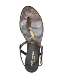Cassandre-plaque leather sandals Highlights - Coffee brown - Calf leather - Embossed crocodile effect - Signature cassandre logo plaque - Gold-tone hardware - Open toe - T-bar strap - Buckle-fastening slingback strap - Branded footbed - Flat sole - This piece comes complete with a protective dust bag. Made in Italy Composition Outer: Calf Leather 100%, Rubber 100% Lining: Calf Leather 100%, Rubber 100% Sole: Calf Leather 100% SIZE & FIT Measurement HEEL 0.59 in(1.5 cm) Sole height 0.39 in(1 cm)