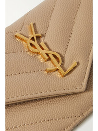 SAINT LAURENT's 'Cassandre' wallet has been made in Italy from quilted textured-leather and topped with the label's iconic 'YSL' plaque in gold. It's fitted with plenty of cardholder slots and has space for cash or receipts.