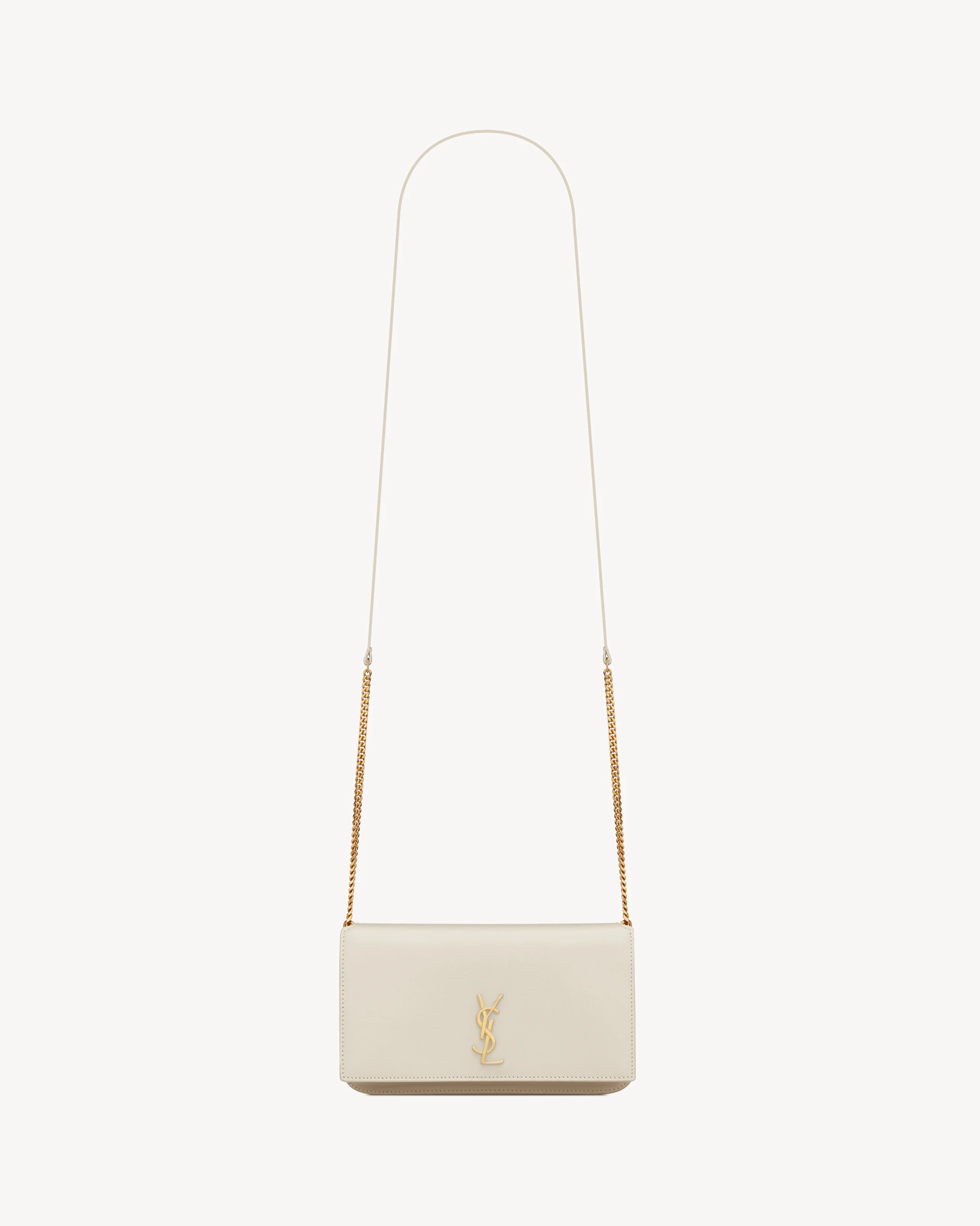 CELL PHONE HOLDER WITH FRONT FLAP DECORATED WITH THE CASSANDRE, FEATURING A LEATHER AND CHAIN SHOULDER STRAP. - DIMENSIONS: 18.5 X 11 X 2,5 CM / 7 X 4.3 X 0.9 INCHES - STRAP DROP: 50 CM / 19.7 INCHES - GOLD-TONED METAL HARDWARE - SNAP-BUTTON CLOSURE - ONE MAIN COMPARTMENT - ONE FLAT POCKET AT THE BACK - CALFSKIN LEATHER, BRASS - STYLE ID 8201750U40J9207 - MADE IN ITALY