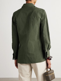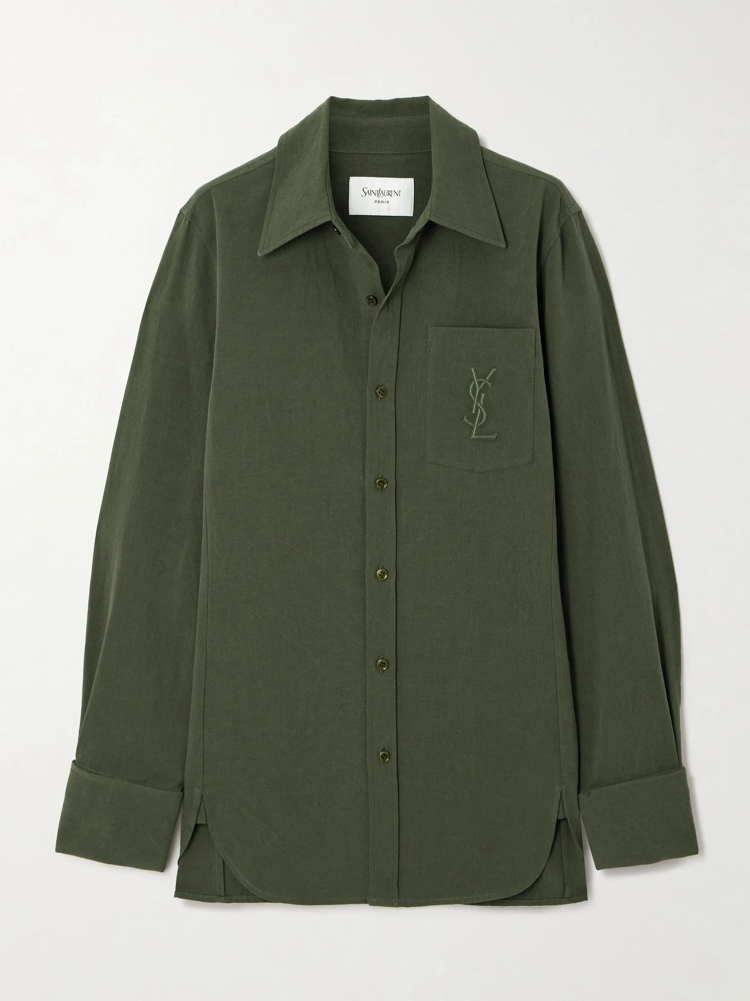 SAINT LAURENT's shirt will unlock endless style possibilities. Designed for a slightly loose fit, it's made from cotton and linen-blend and embroidered with 'YSL' on the chest pocket. Roll the French cuffs for added nonchalance. Size & Fit - Fits true to size, take your normal size - Designed for a slightly loose fit - Lightweight, non-stretchy fabric - Model is 180cm/ 5'11" and is wearing a FR 36 Model measurements: - Bust: 85cm/ 33.5" - Waist: 62cm/ 24.5" - Hip: 88cm/ 34.5" Details & Care - Green cotton and linen-blend - Button fastenings through front - 50% cotton, 50% linen - Dry clean