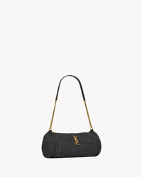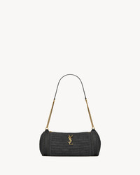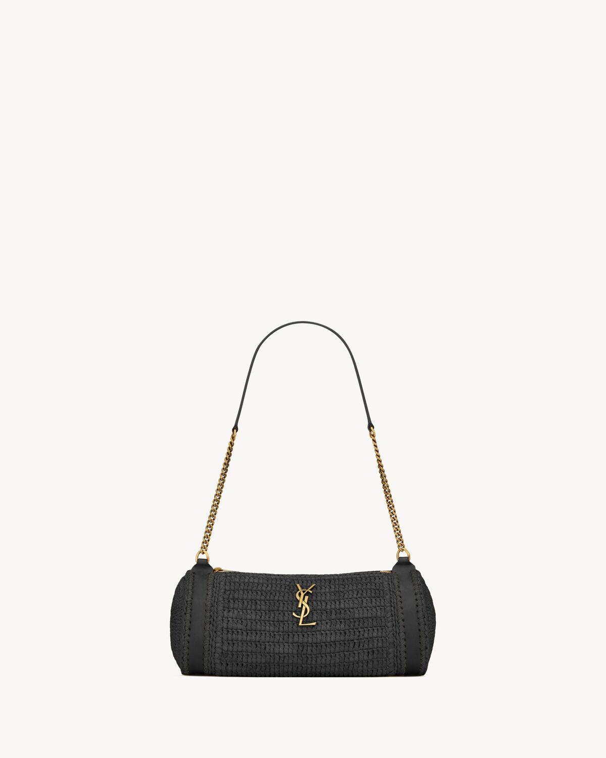 CYLINDER BAG MADE WITH METAL-FREE TANNED LEATHER DECORATED WITH THE CASSANDRE, FEATURING LEATHER DETAILS AND A LEATHER AND CHAIN STRAP. - METAL-FREE, CHROME-FREE TANNED LEATHER - BRONZE-TONED HARDWARE - ZIP CLOSURE - DIMENSIONS: 24.5 X 11 X 11 CM / 9.6" X 4.3" X 4.3" - STRAP DROP: 27 CM / 10.6" - RAFFIA, CALFSKIN LEATHER, BRASS - STYLE ID 744504GAABN1000 - MADE IN MADAGASCAR