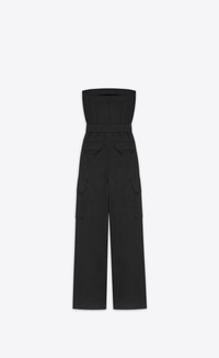 STRAPLESS BELTED JUMPSUIT, FEATURING WIDE-LEG PANTS WITH A CASSANDRE EMBROIDERY AT THE SIDE POCKET AND AN INNER BUSTIER. - 100% COTTON - COTTON LINING - CONCEALED BACK ZIP CLOSURE WITH HOOK-AND-EYE SAFETY - REMOVABLE PIN-BUCKLE BELT - TWO JETTED POCKETS WITH BUTTON AT THE SIDES - TWO BELLOW POCKETS WITH SNAP-BUTTON FLAP AT THE SIDES - TWO JETTED POCKETS WITH SNAP-BUTTON FLAP AT THE BACK - STRAPLESS NECKLINE - INNER UNDERWIRE BANDEAU - STYLE ID 789862Y1A621000 - MADE IN FRANCE