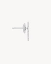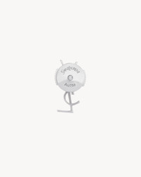 CASSANDRE SINGLE STUD EARRING MADE WITH RECYCLED GOLD. GOLD IS A PRECIOUS MATERIAL THAT IS MALLEABLE AND HIGHLY SENSITIVE TO SCRATCHING. THE PRODUCT IS EXPECTED TO EVOLVE AND PRESENT MARKS THROUGHOUT ITS LIFECYCLE. MOREOVER, AS GOLD IS A SOFT ALLOY, PIECES SHOULD NOT BE STACKED ONE ON TOP OF THE OTHER TO AVOID DAMAGING THEM. EVERY PIECE OF JEWELRY MUST BE STORED IN ITS ORIGINAL PACKAGING TO AVOID ANY FRICTION WITH OTHER OBJECTS THAT COULD SCRATCH IT. WHEN PART OF A SET, PIECES MUST BE STOCKED SEPARATELY. - RECYCLED GOLD - POST AND PRESS-CLUTCH CLOSURE FOR PIERCED EARS - SAINT LAURENT-ENGRAVED CLOSURE - DIMENSIONS: 15 X 6.5 MM / 0.6 X 0.3 INCHES - 18KT GREY GOLD 750/1000 - STYLE ID 761535Y80028126 - MADE IN FRANCE