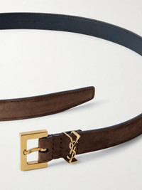SAINT LAURENT's 'YSL' monogram was created in 1961 by the Ukrainian-French commercial poster artist Cassandre - little did he know, it would become one of the most iconic logos in fashion history. Made in Italy from suede, this 'Cassandre' belt is decorated with gold-tone hardware that makes it so easy to match with any outfit or jewelry.