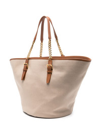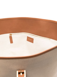 Cassandre-tag canvas tote bag Highlights - Natural beige/camel brown - Canvas - Leather trim - Two leather and chain-link top handles - Leather tag with signature cassandre logo plaque - Main compartment - Internal zip-fastening pocket - Internal logo patch - Full lining - Antique-effect gold-tone hardware - Open top - This piece comes complete with a protective dust bag. Made in Italy Composition Outer: Fabric 100%, Calf Leather 100% SIZE & FIT Model measurements Height 5 ft 9 in(1.75 m) Bust/Chest 34.64 in(88 cm) Hips 36.61 in(93 cm) Waist 26.37 in(67 cm) Measurement DEPTH 9.05 in(23 cm) HANDLE 5.9 in(15 cm) HEIGHT 12.59 in(32 cm) WIDTH 17.71 in(45 cm)