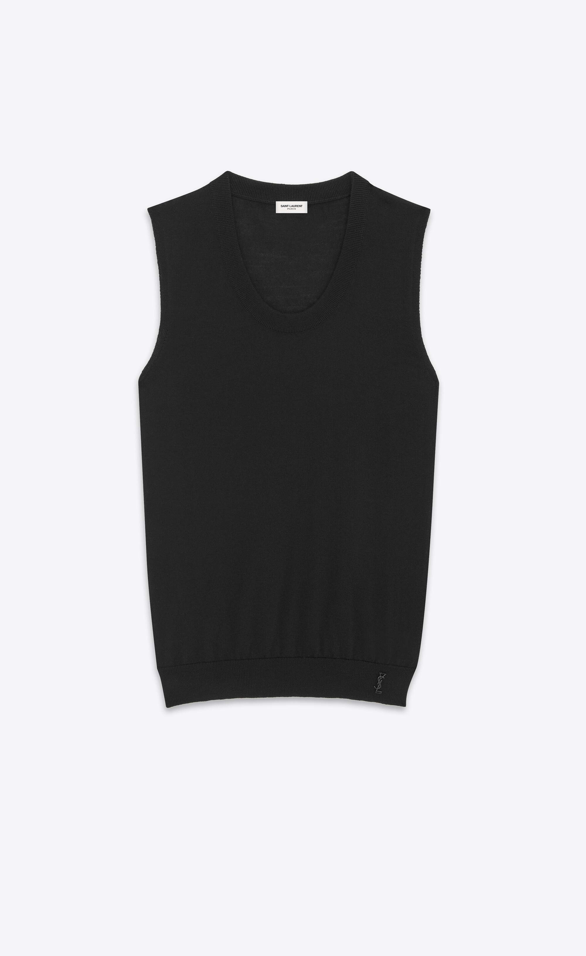 SEMI-SHEER SLEEVELESS TOP MADE WITH RESPONSIBLE WOOL, FEATURING A ROUND NECK AND METAL CASSANDRE AT THE HEM. - 100% WOOL - RESPONSIBLE WOOL - ROUND NECK - STYLE ID 774404Y75YW1000 - MADE IN ITALY