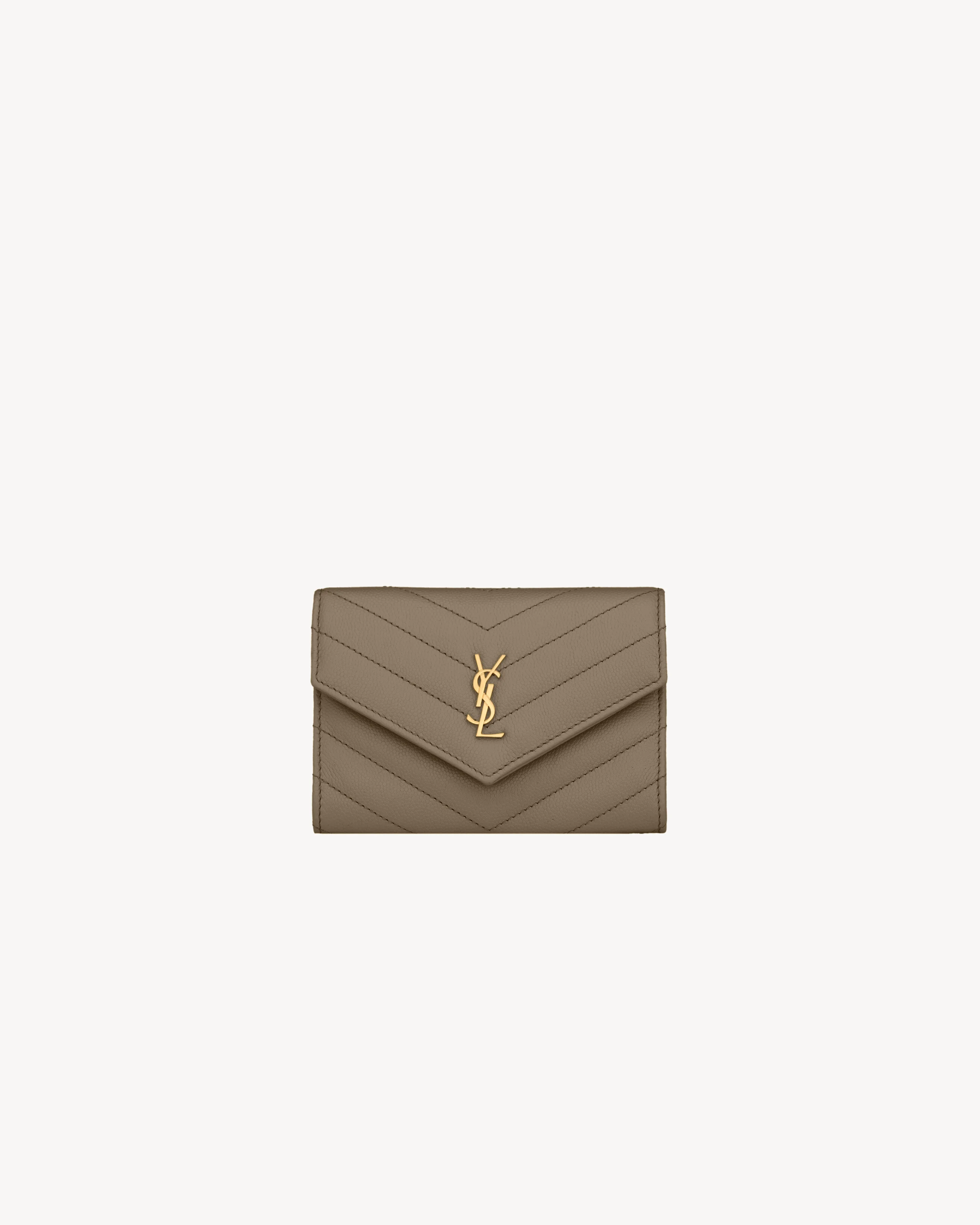 ENVELOPE WALLET DECORATED WITH THE CASSANDRE AND QUILTED TOPSTITCHING. - BRONZE-TONE HARDWARE - SNAP-BUTTON CLOSURE - ONE FLAT POCKET AT THE BACK - FOUR CARD SLOTS - ONE OPEN COMPARTMENT - DIMENSIONS: 13.5 X 9.5 X 3 CM / 5.3" X 3.7" X 1.2" - CALFSKIN BRASS - STYLE ID 843896AAGA81799 - MADE IN ITALY