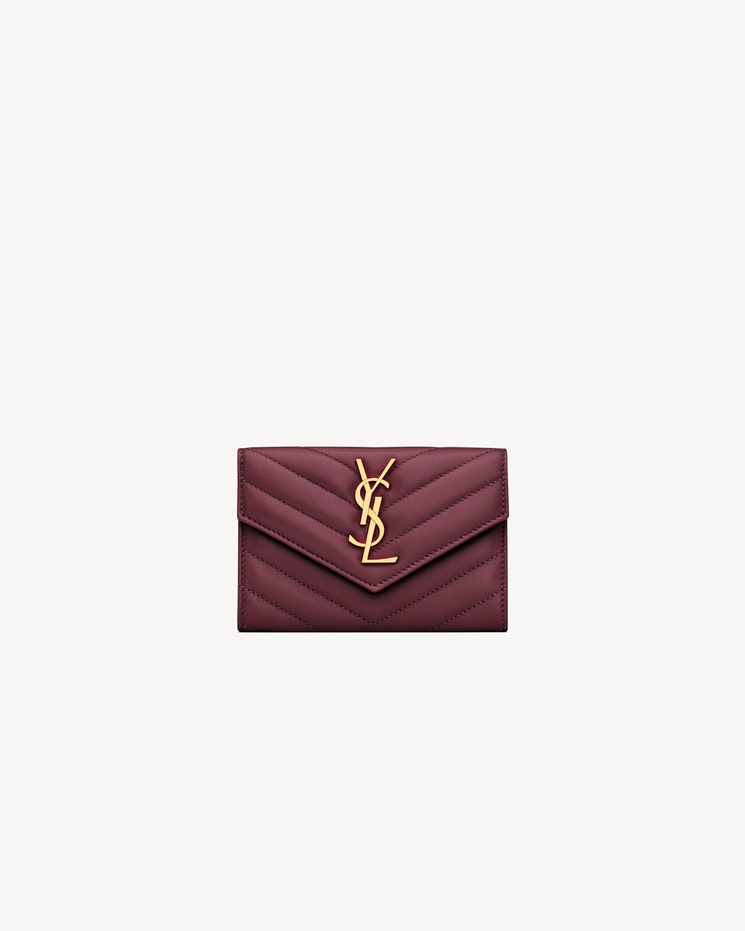 ENVELOPE WALLET DECORATED WITH THE CASSANDRE AND QUILTED TOPSTITCHING. - LEATHER LINING - GOLD-TONE HARDWARE - SNAP-BUTTON CLOSURE - FOUR CARD SLOTS - ONE FLAT POCKET AT THE BACK - DIMENSIONS: 13.5 X 9.5 X 3 CM / 5.3" X 3.7" X 1.1" - 70% LAMBSKIN 30% BRASS - STYLE ID 414404AAA446195 - MADE IN ITALY